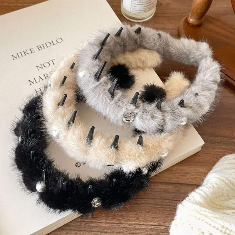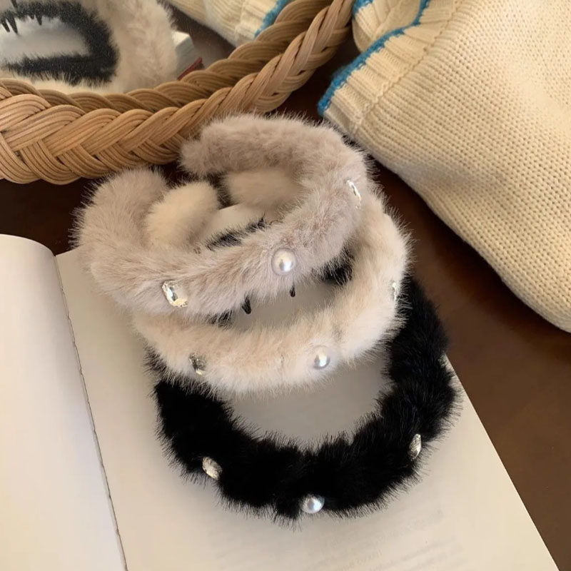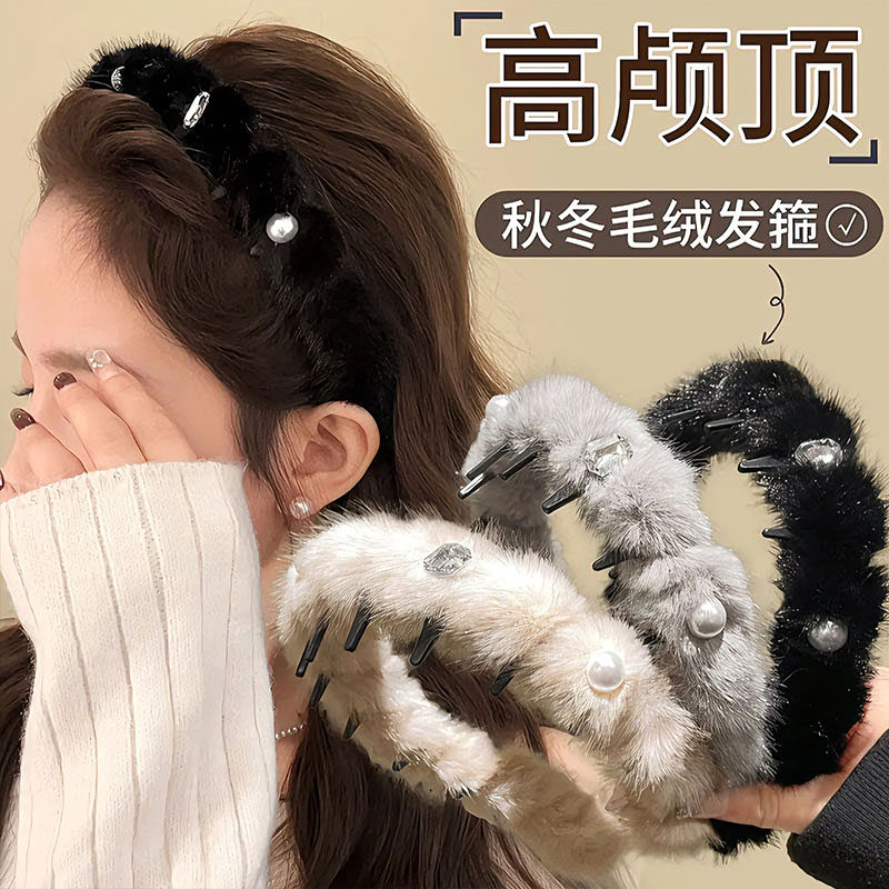 精致百搭毛绒波浪发箍带齿防滑增高颅顶头箍碎发整理压发发饰秋冬