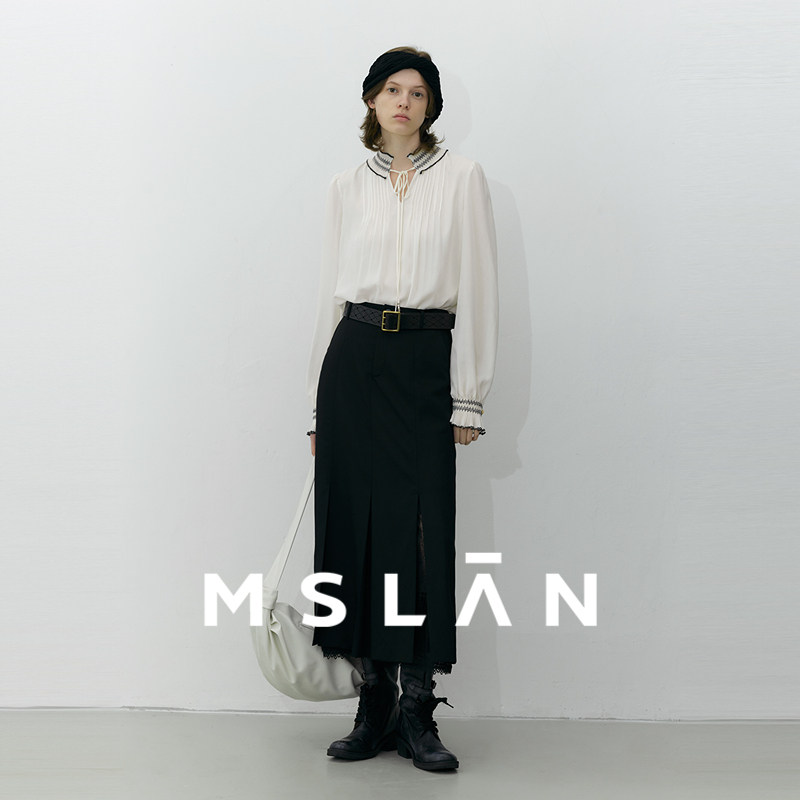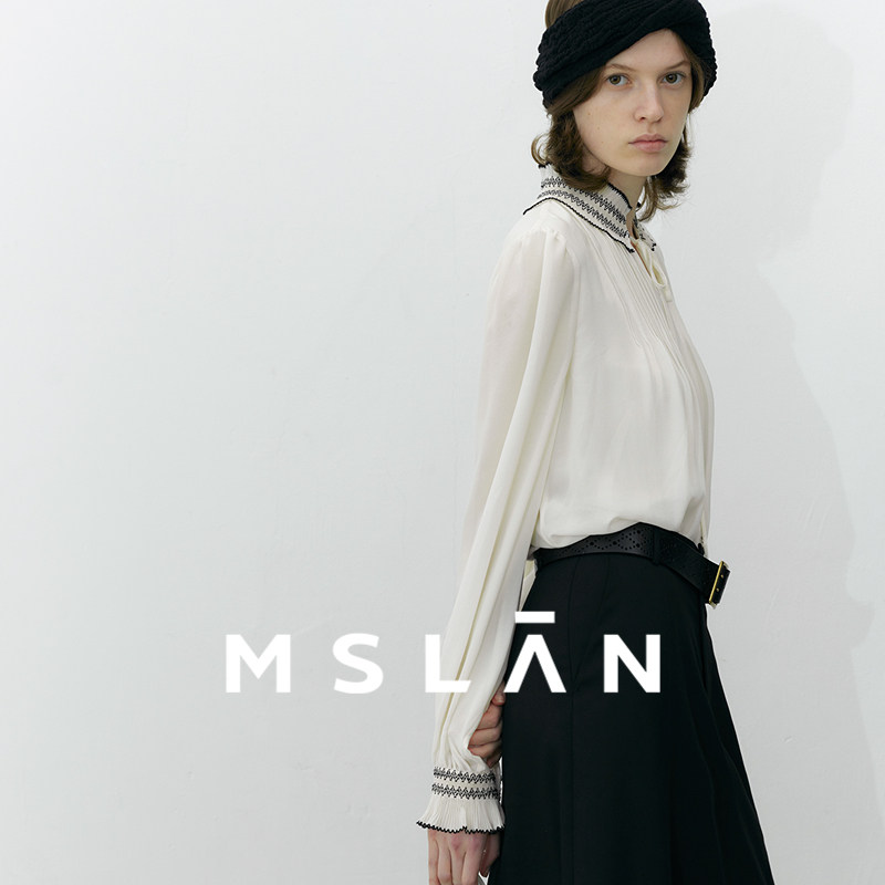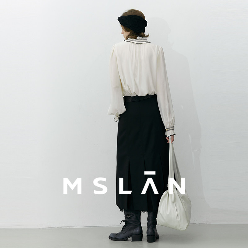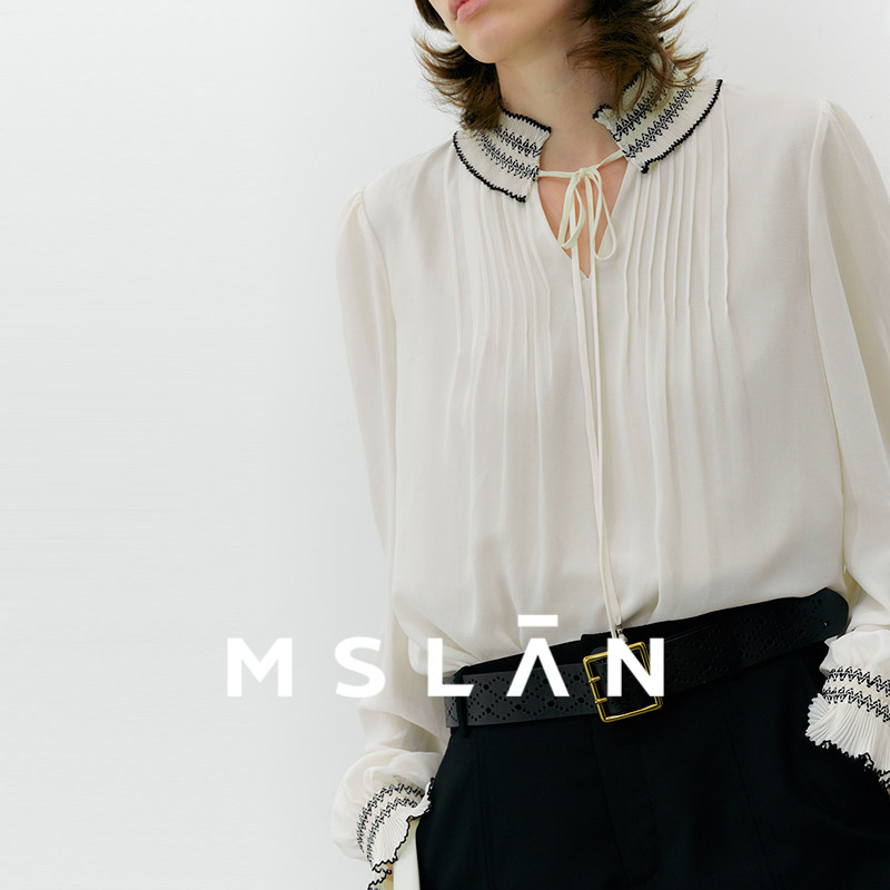 浅春系/MSLAN法式肌理感雪纺衫荷叶领轻盈套衫MGCN4011