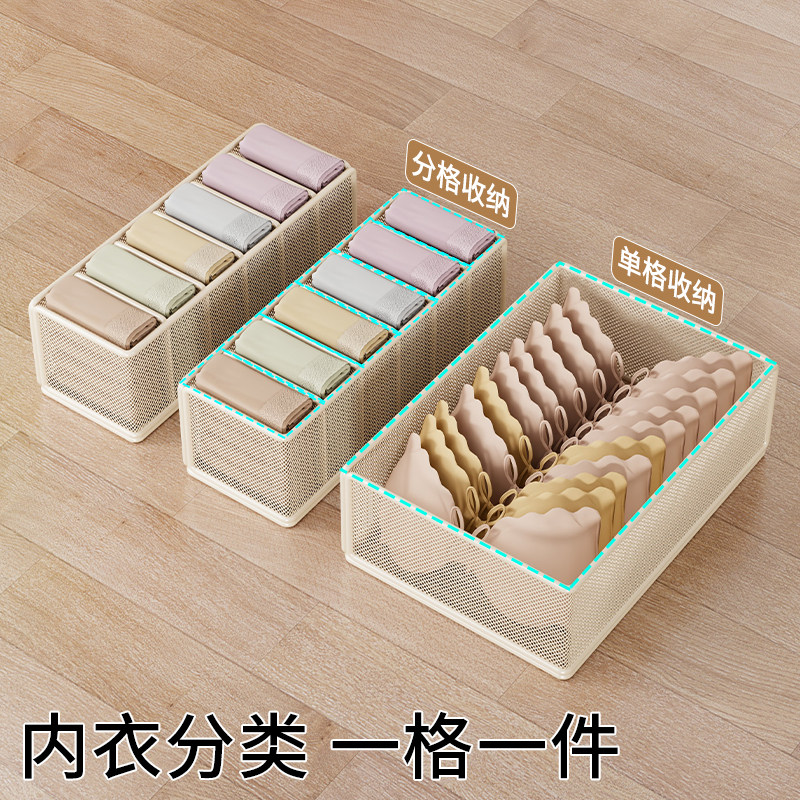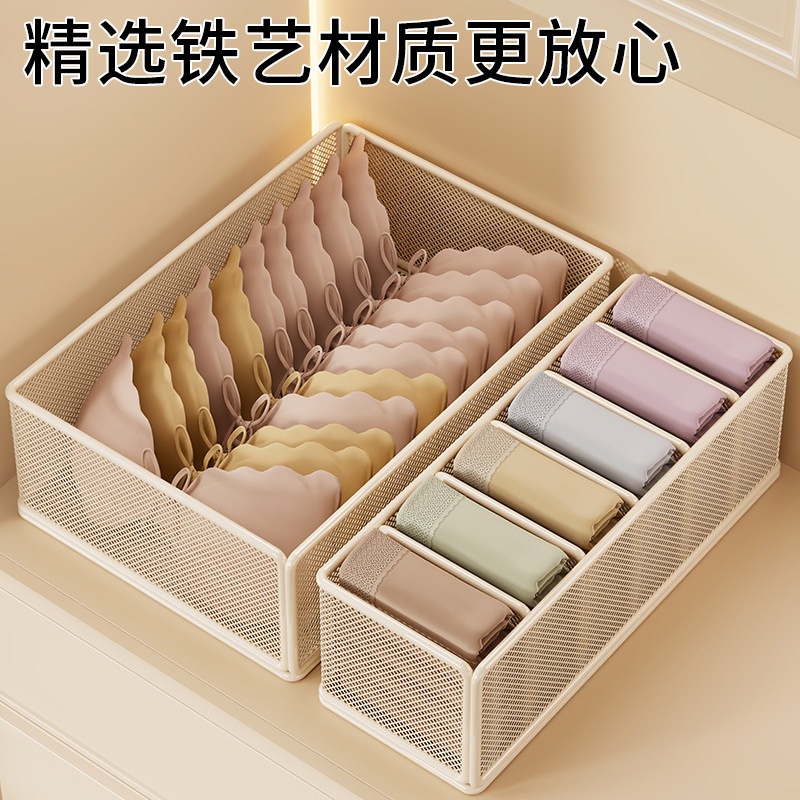 内衣内裤收纳盒家用文胸袜子分格收纳筐衣柜抽屉铁艺大容量储物架
