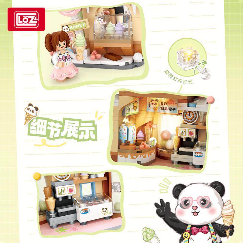 熊猫冰淇淋屋积木小颗粒拼装玩具美食店街景模型diy小屋兼容乐高
