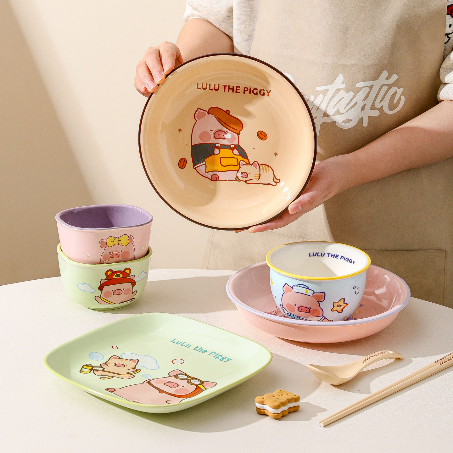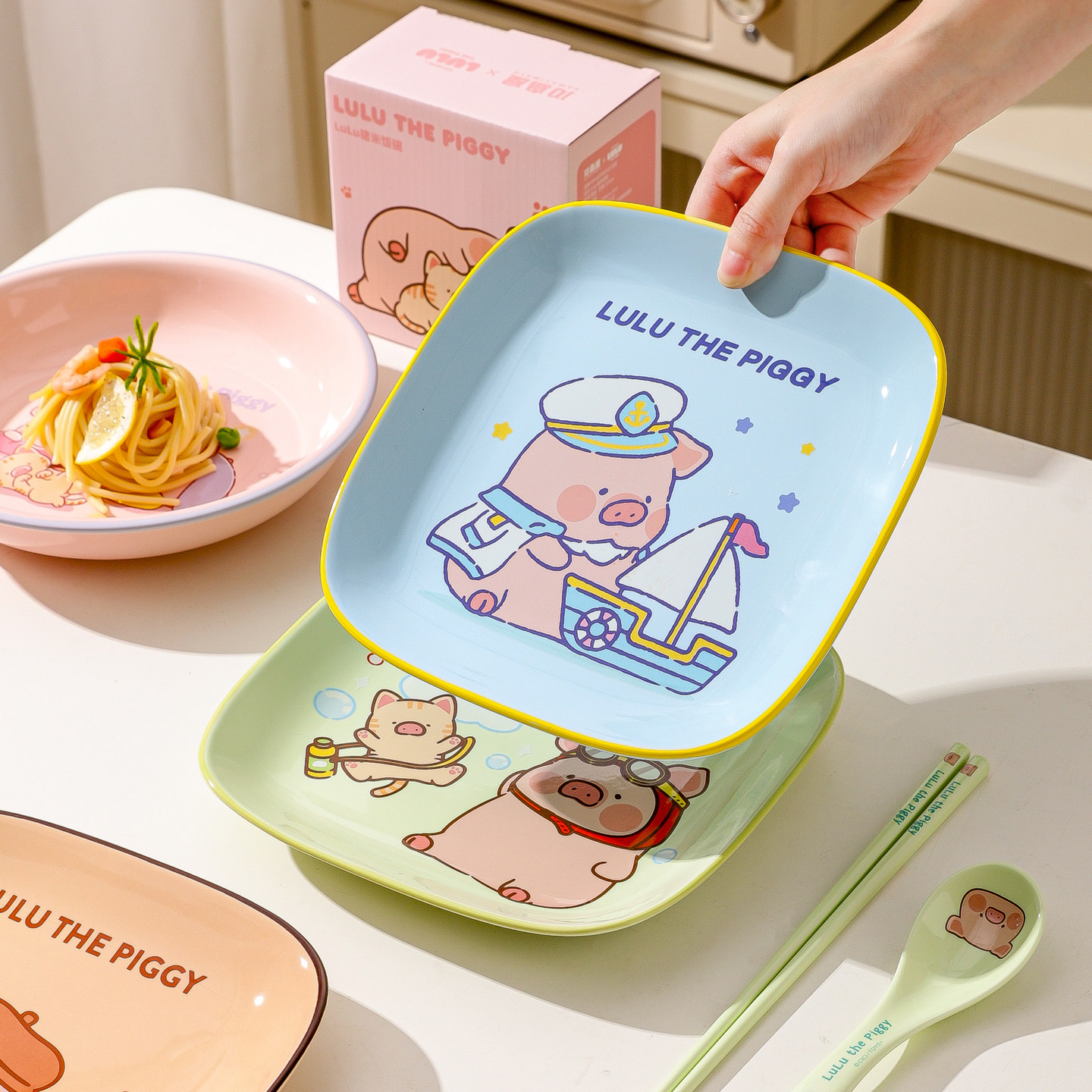 川岛屋&LuLu猪联名 陶瓷盘子菜盘家用2026新款碗可爱餐具儿童餐盘