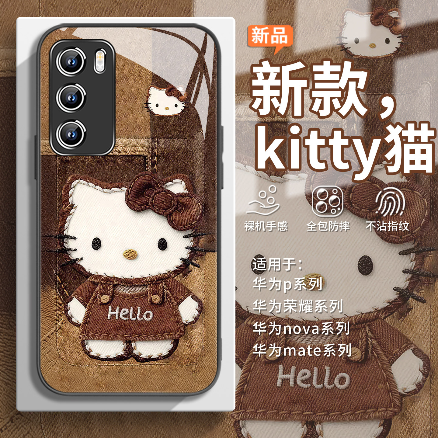适用华为mate80针织手机壳工装凯蒂猫pura70刺绣Hellokitty荣耀500背带裤magic8牛仔布纹nova15秋冬x70可爱60