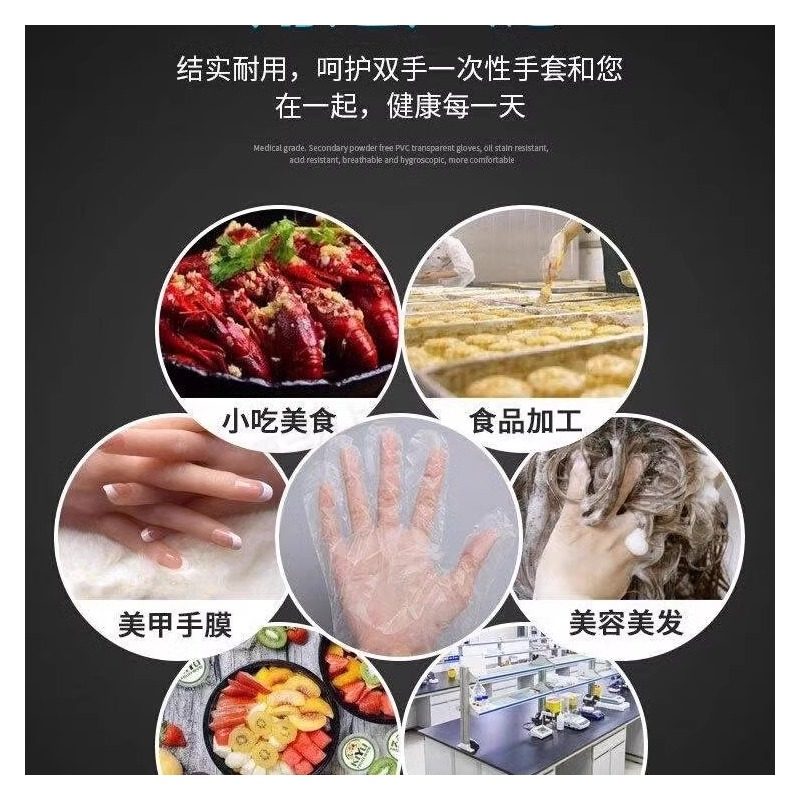 一次性手套食品餐饮薄膜透明加厚塑料手套龙虾手套美容手膜pe手套