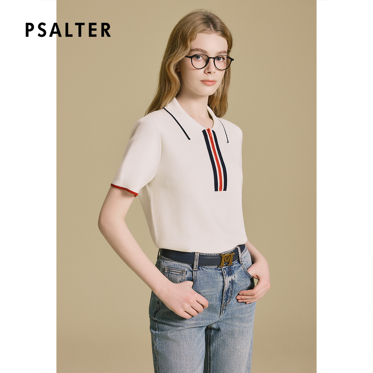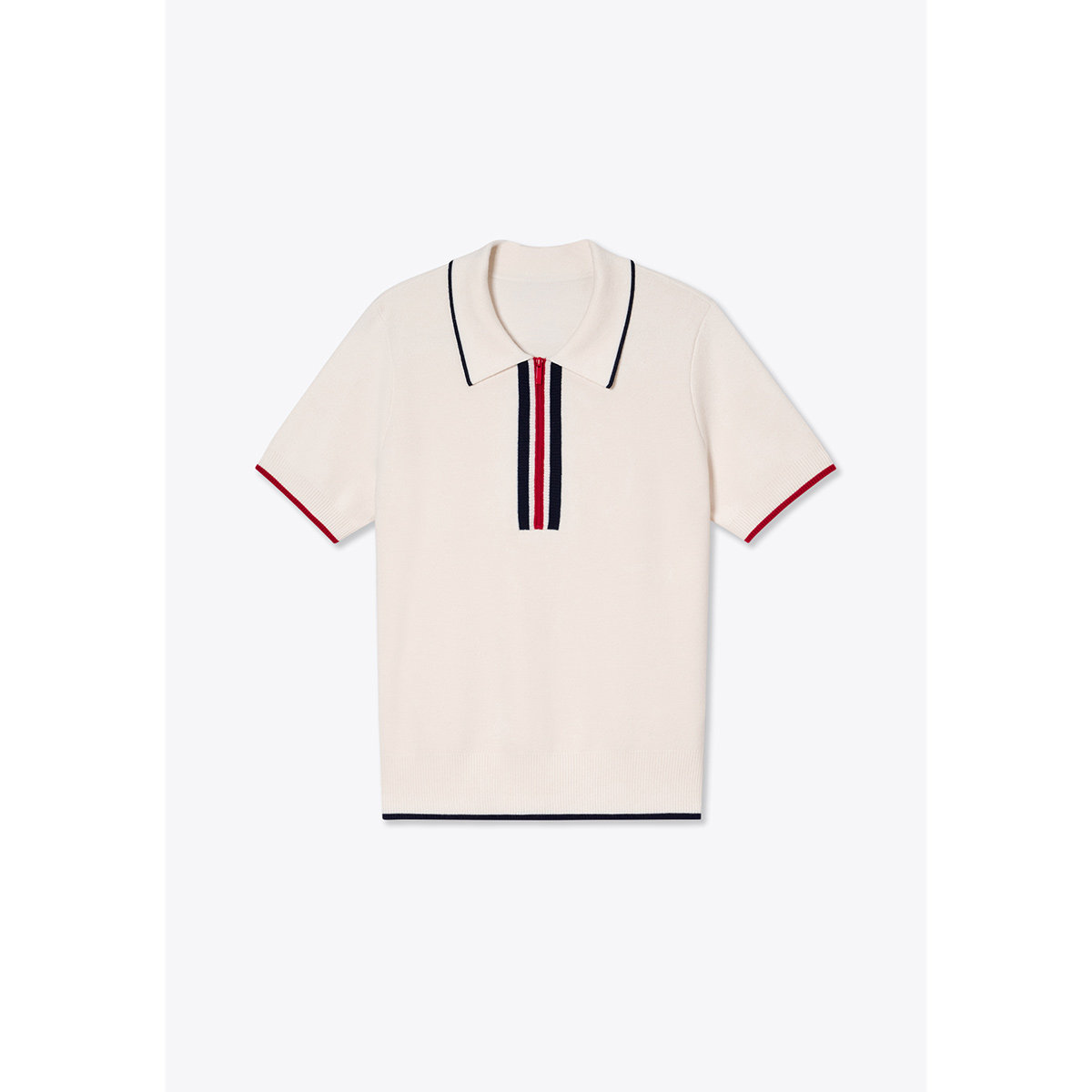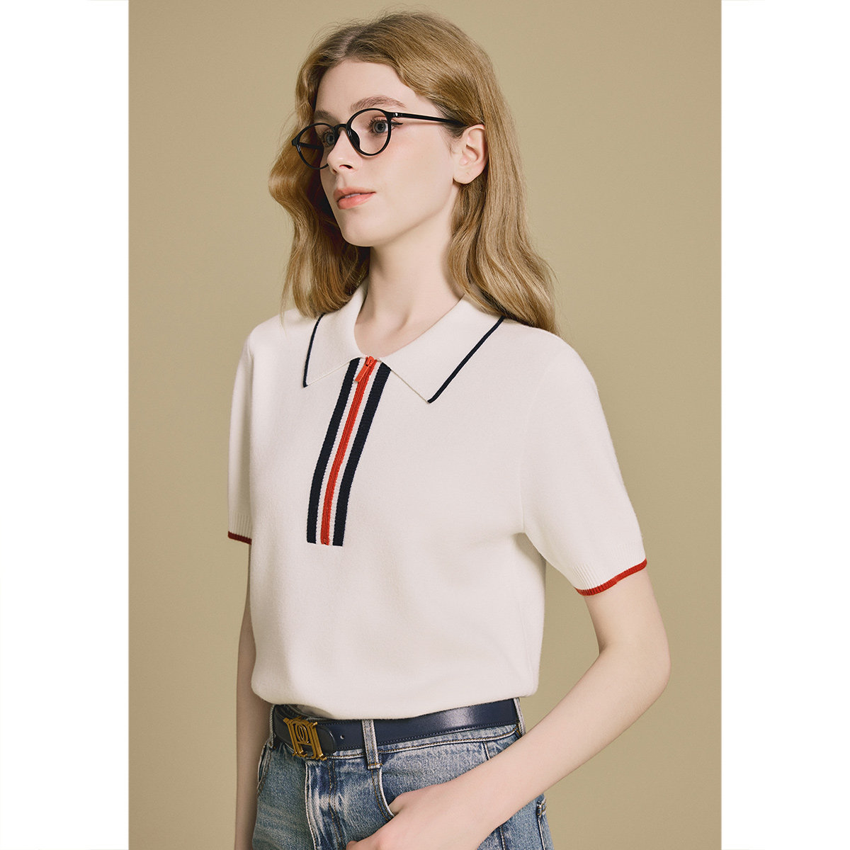 诗篇专选英翻领拼色条纹POLO领针织短袖T恤上衣2025秋款