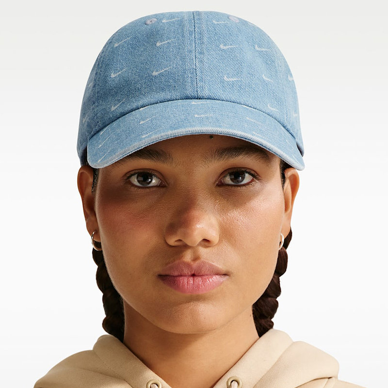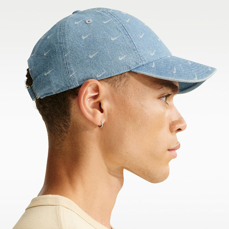 NIKE耐克棒球帽男女帽满印小勾牛仔蓝运动帽遮阳鸭舌帽HQ0360-429