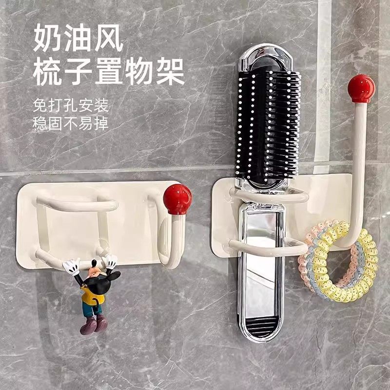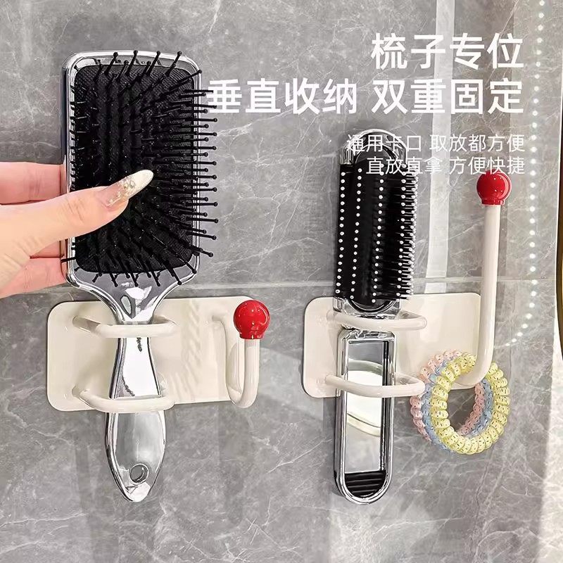 多巴胺梳子置物架壁挂收纳免打孔头绳发圈发箍挂钩浴室首饰粘钩