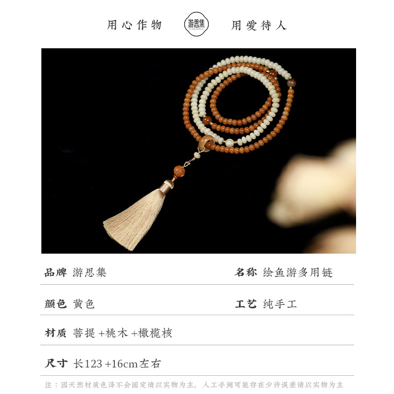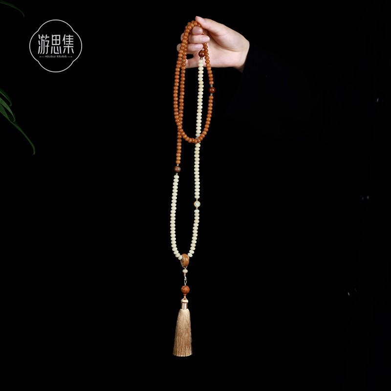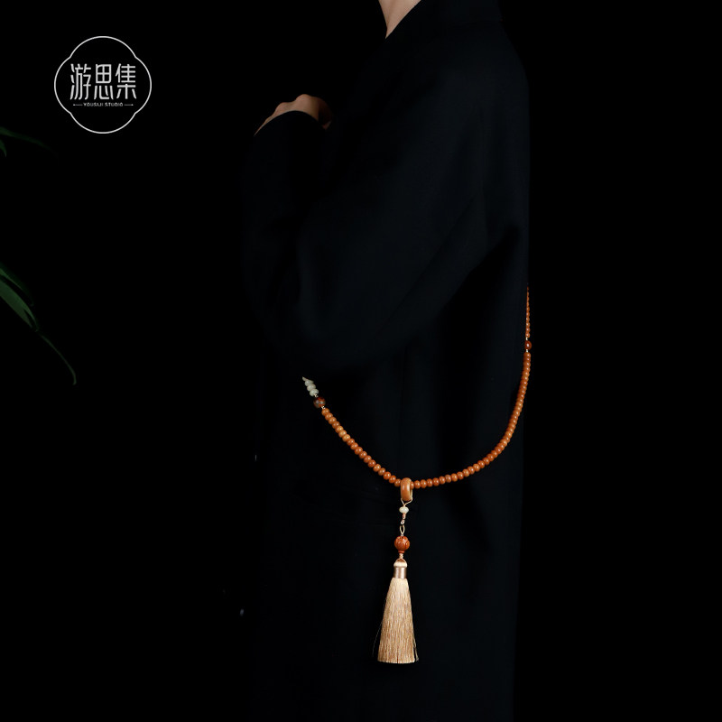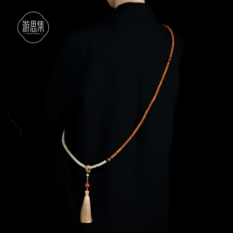 菩提檀香旗袍项链女新中式背背链配饰国风斜挎链佛珠多层菩提手串