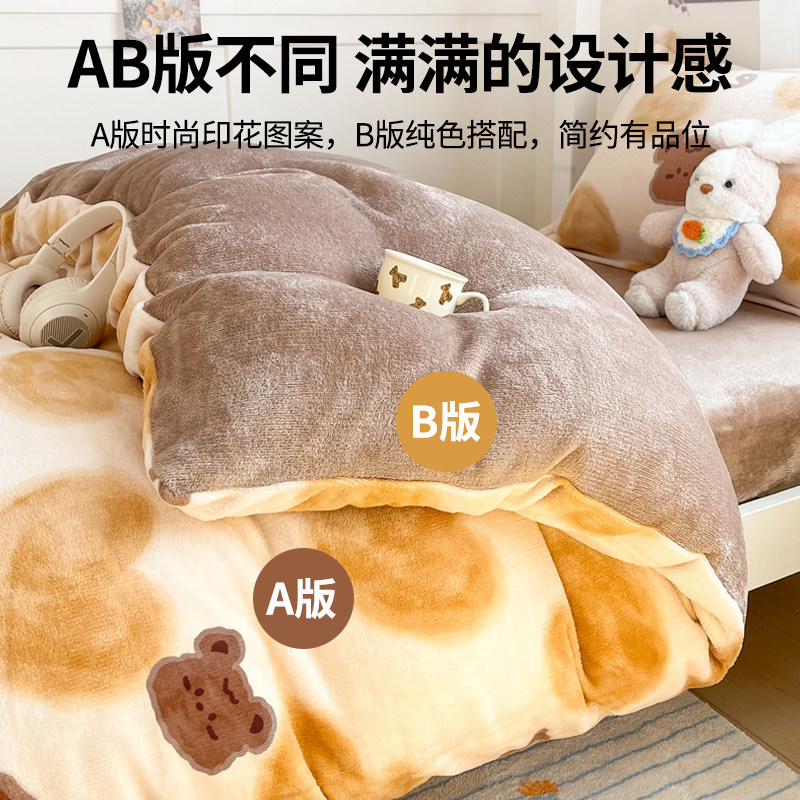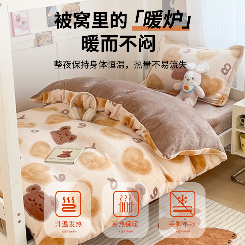 牛奶绒双面加绒被套床单三件套学生宿舍单人床上用品法兰珊瑚绒四