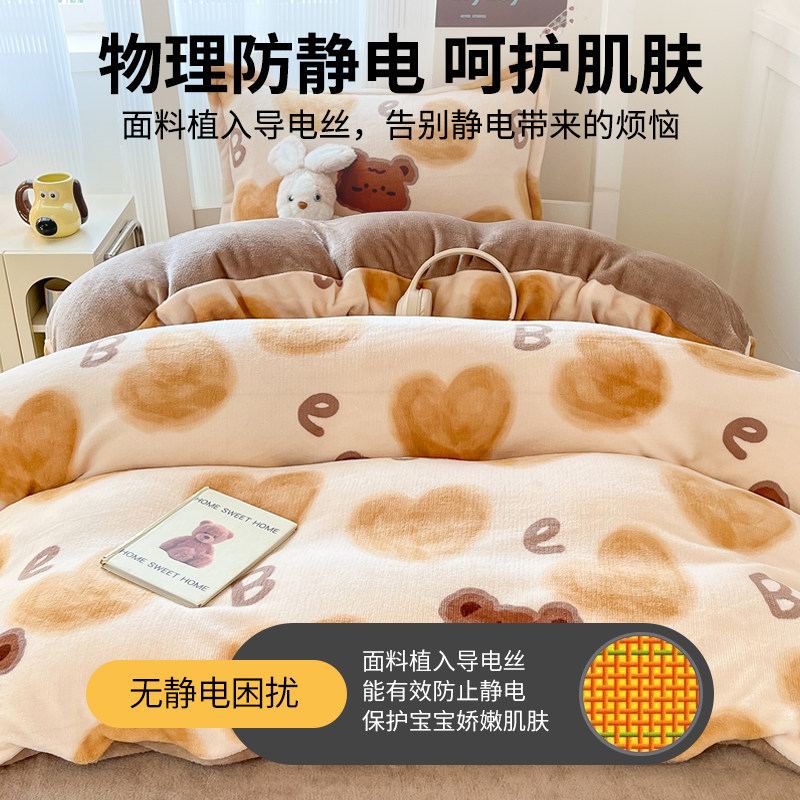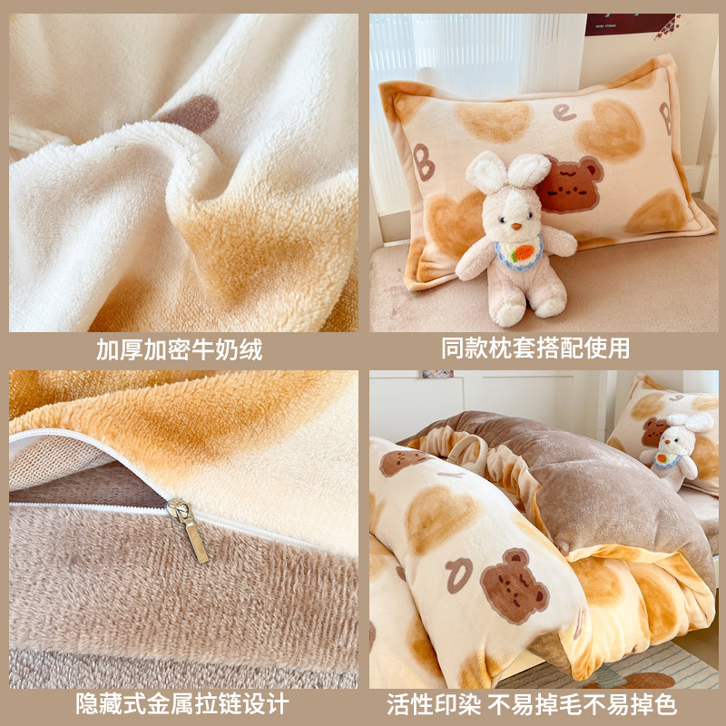 秋冬季加厚四件套牛奶绒被套床单双面加绒被罩床笠学生宿舍三件套