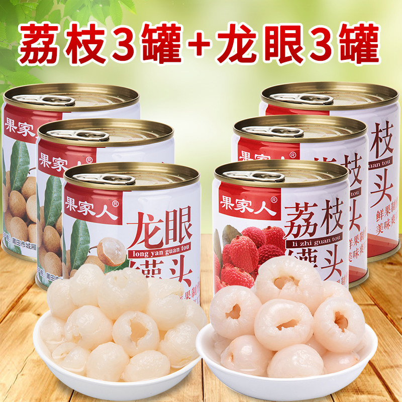 果家人新鲜水果罐头龙眼糖水荔枝罐头312g*6罐商用橘子杨梅黄桃