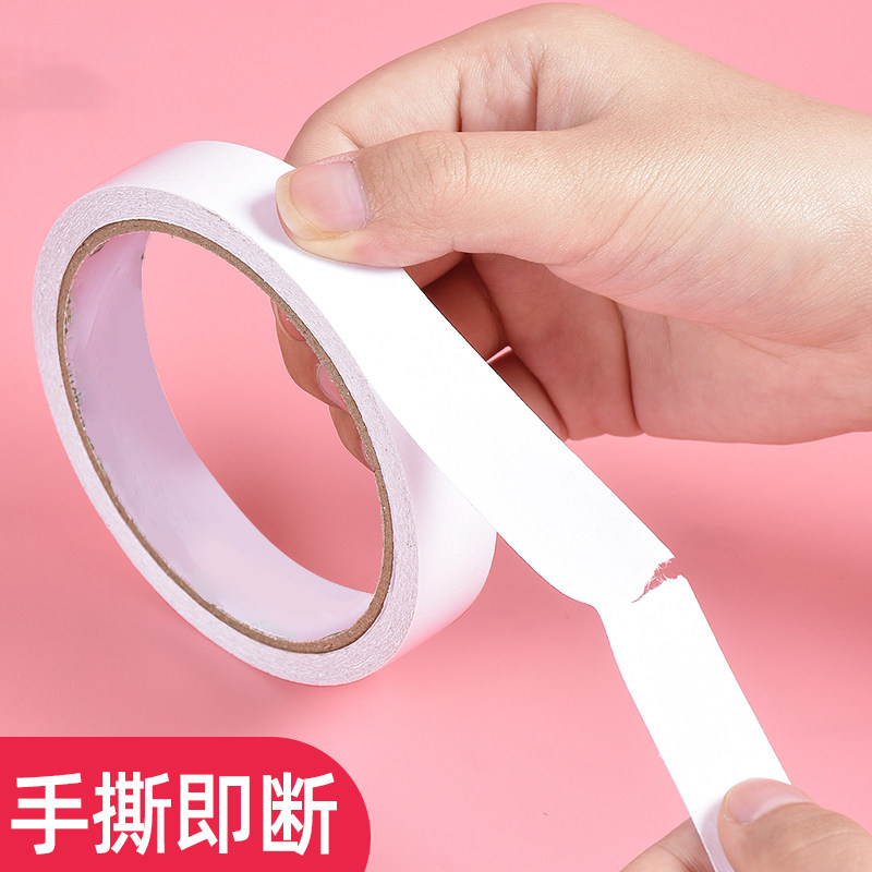 高粘度双面胶强力高粘度固定墙面超粘手工宽胶带两面粘贴纸学生文具办公用品易撕透明白色双面胶带