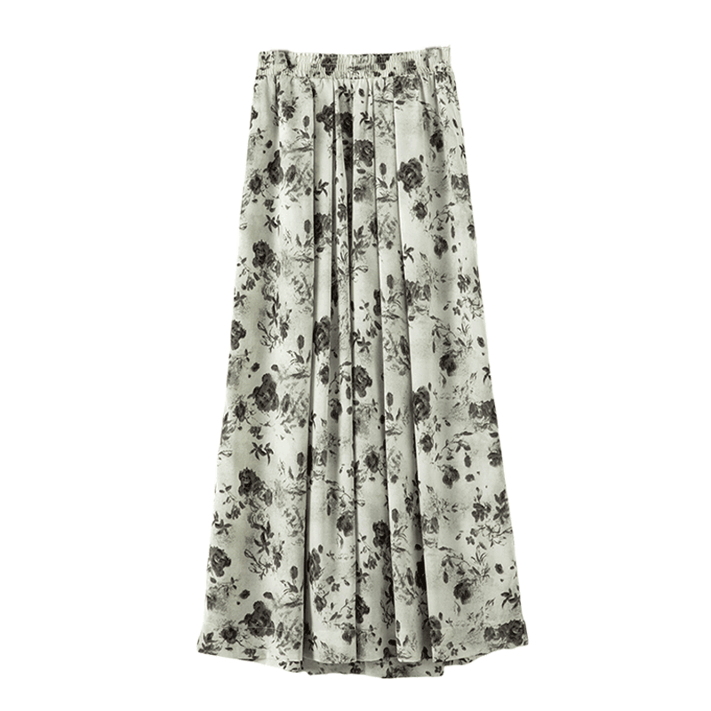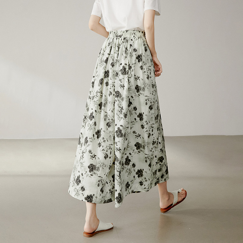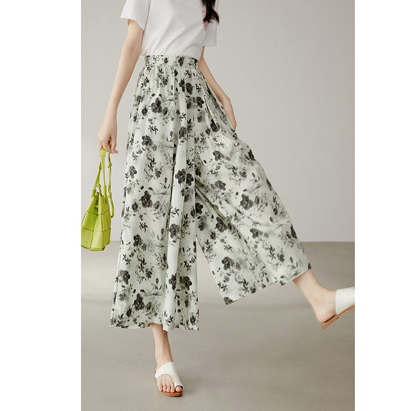 晚白2026年春新款时尚简约高腰裤子宽松印花休闲阔腿裙裤女