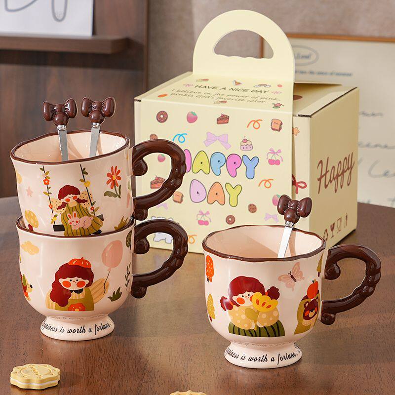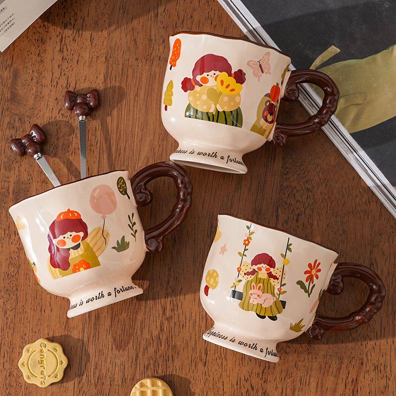 复古可爱女孩马克杯陶瓷高颜值家用办公水杯咖啡杯伴手礼生日礼物