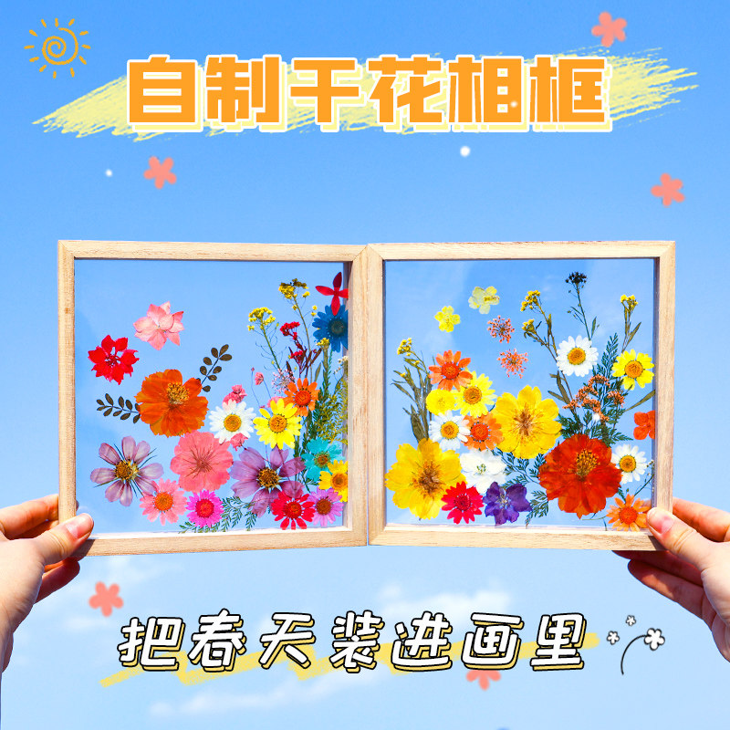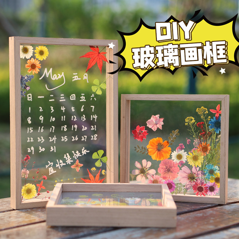 压花相框diy手工干花植物标本永生花双面透明玻璃板画框儿童春天