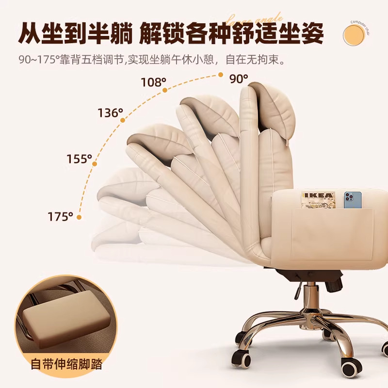 电脑椅子家用办公靠背懒人沙发椅卧室可躺人体工学座椅舒适电竞椅