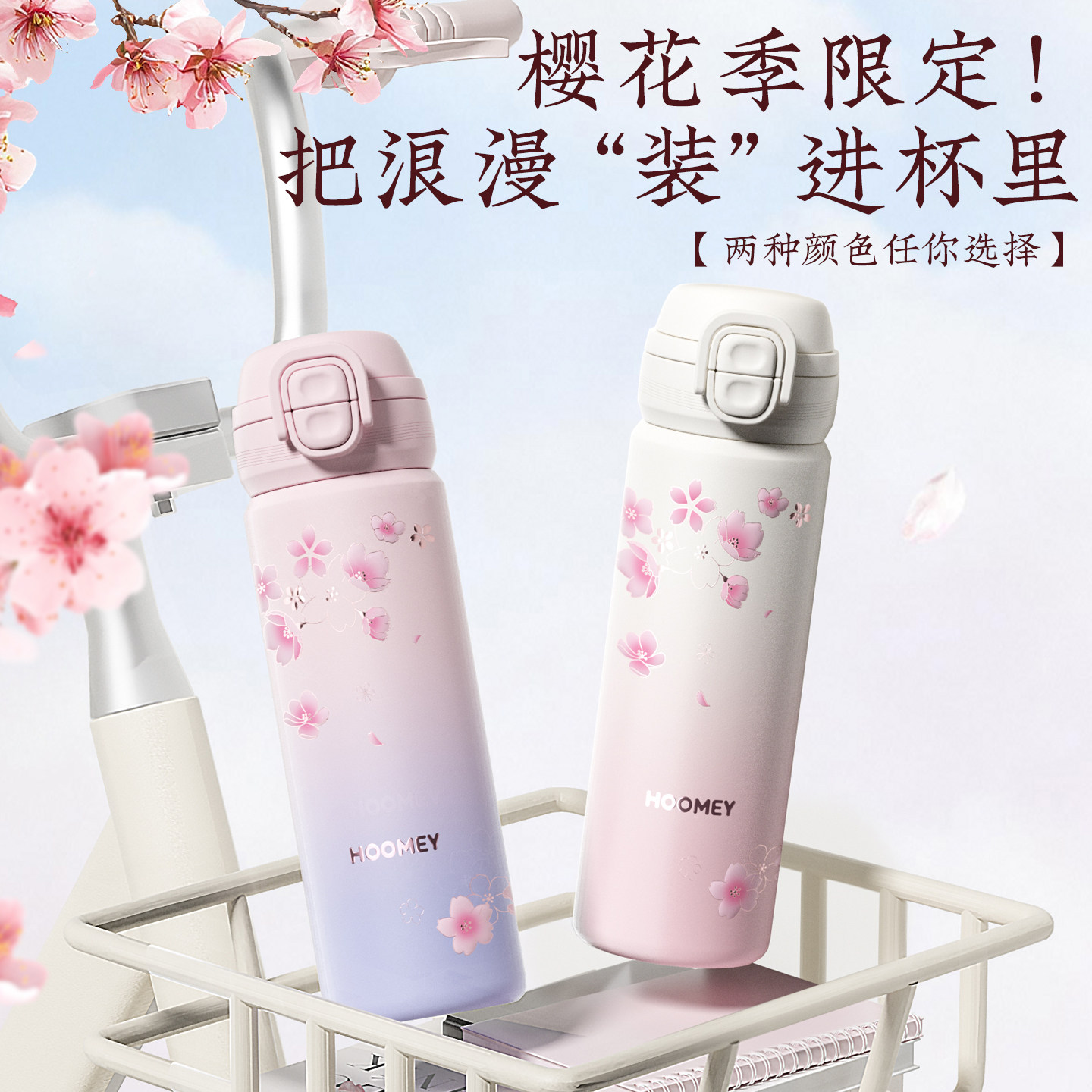 hoomey保温杯女高颜值2025新款大容量双饮便携杯子学生吸管水杯