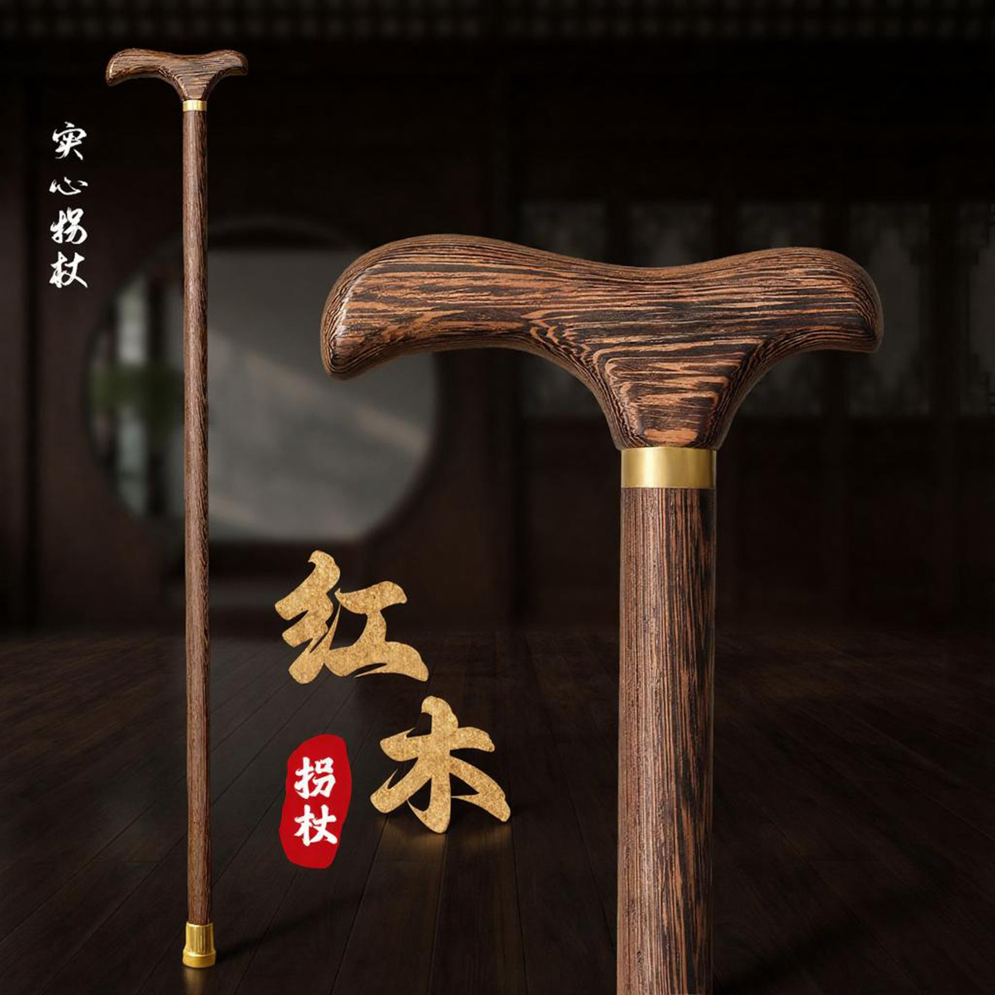 黄花梨鸡翅木拐杖实木轻便防滑手杖原木色户外徒步登山杖四脚拐棍