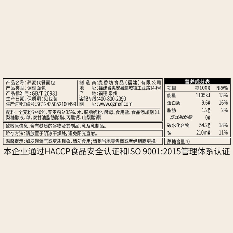 味出道黑荞麦全麦面包无糖精粗粮吐司低脂肪早餐代餐零食夜宵充饥