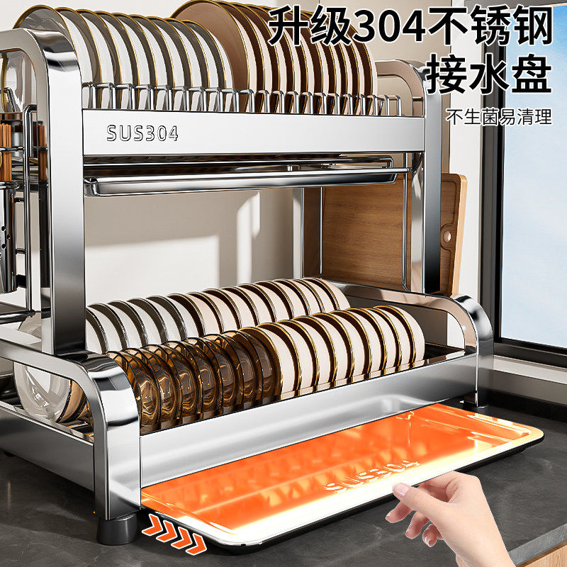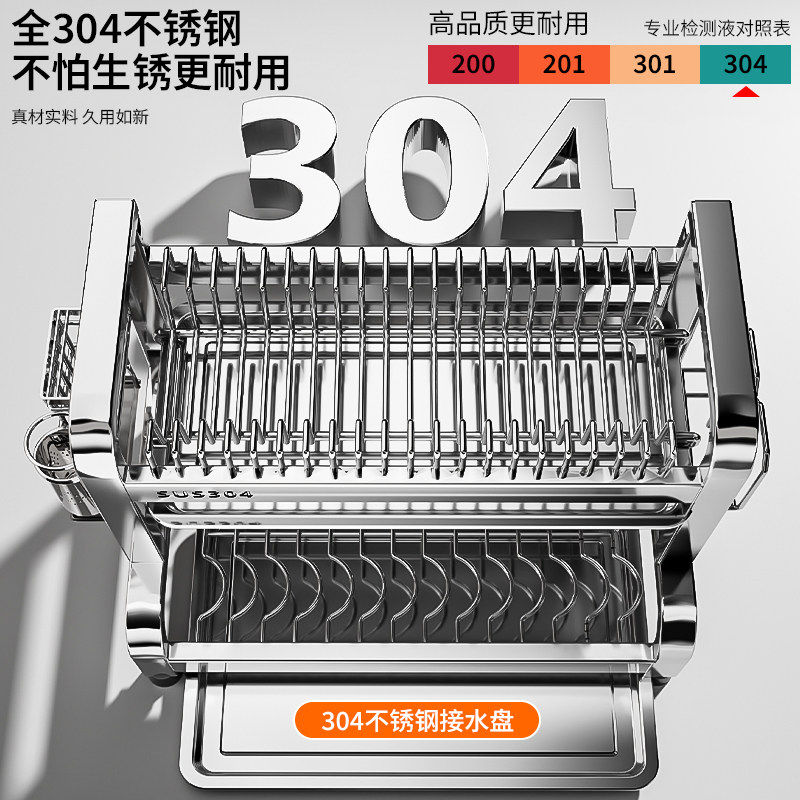 304不锈钢厨房置物架碗碟碗盘沥水架多功能放碗架碗筷收纳盒碗柜