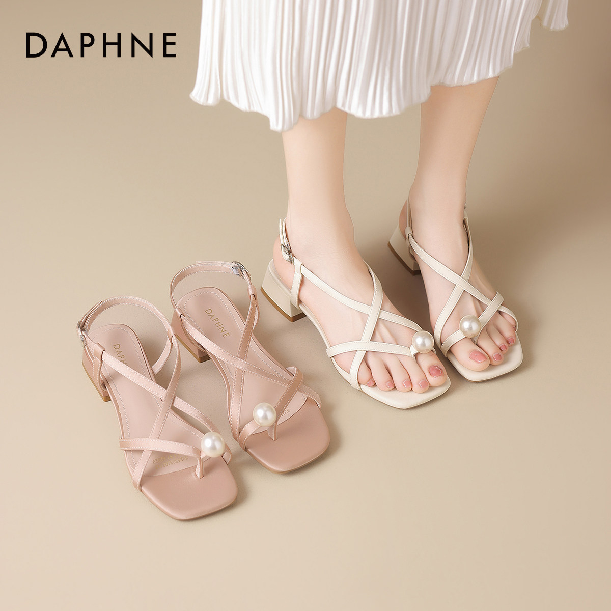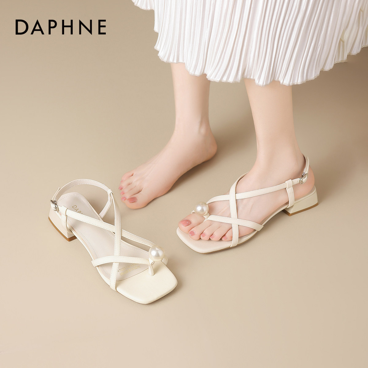 达芙妮粉色珍珠平底凉鞋女款2026新款夏季外穿法式绝美气质凉拖鞋