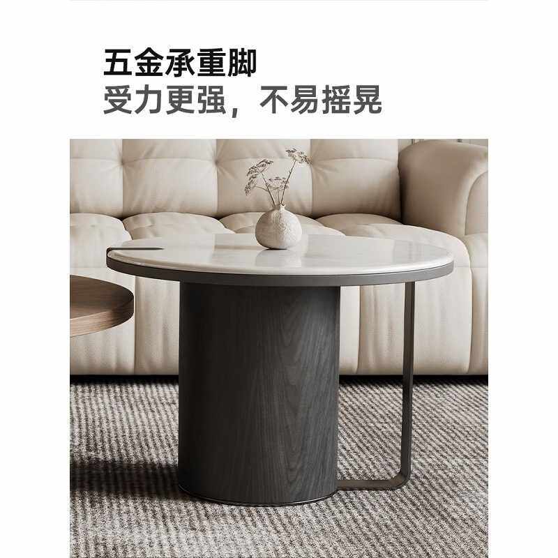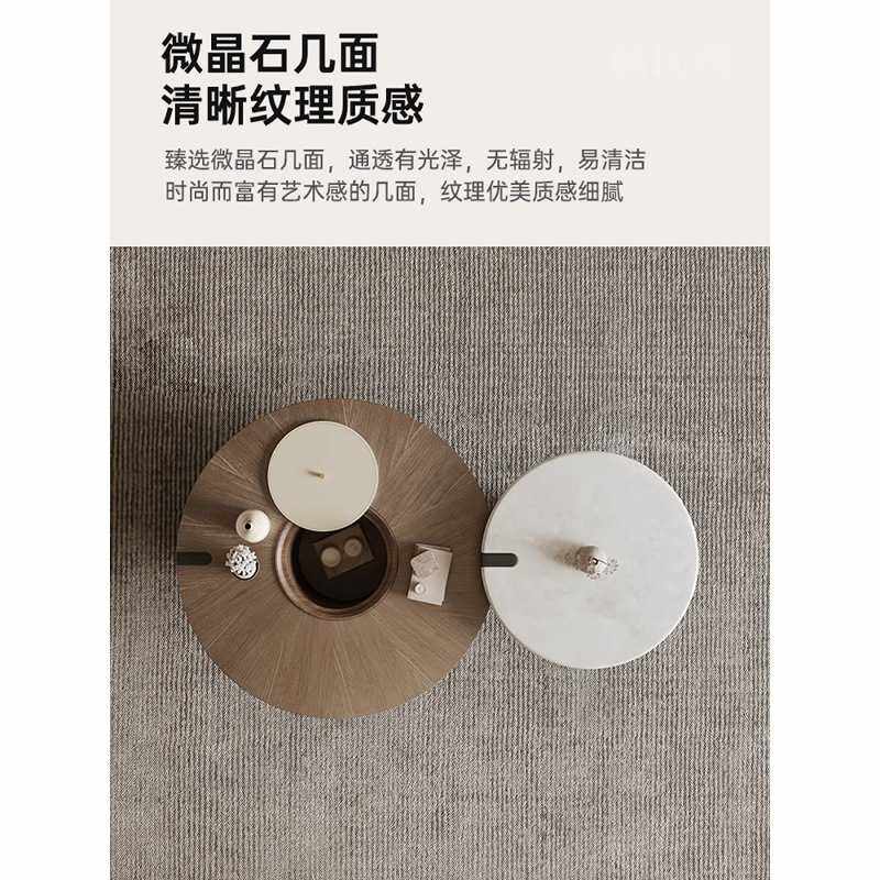 MEZ913恒社 意式极简微晶石圆形茶几组合小户型客厅2025新款胡桃