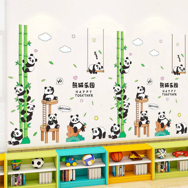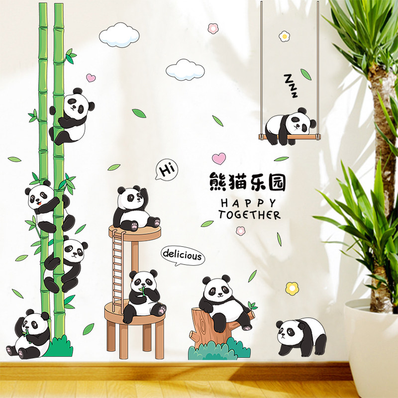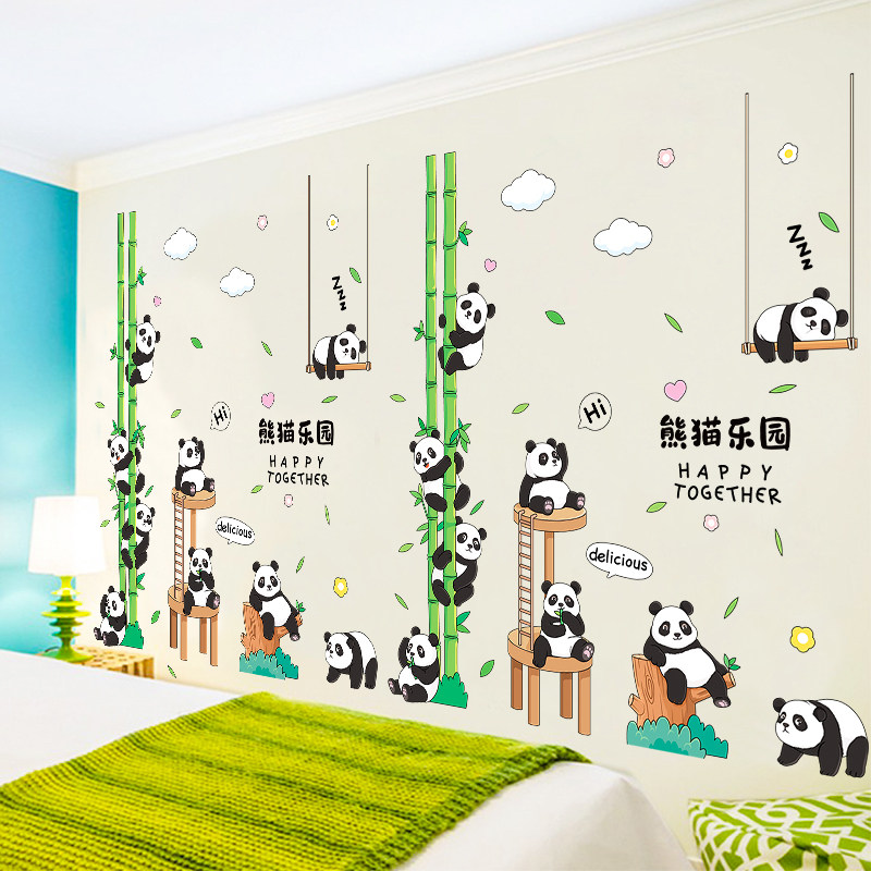 儿童卡通熊猫墙贴房间婴儿宝宝贴画背景墙面装饰品贴纸墙纸自粘画