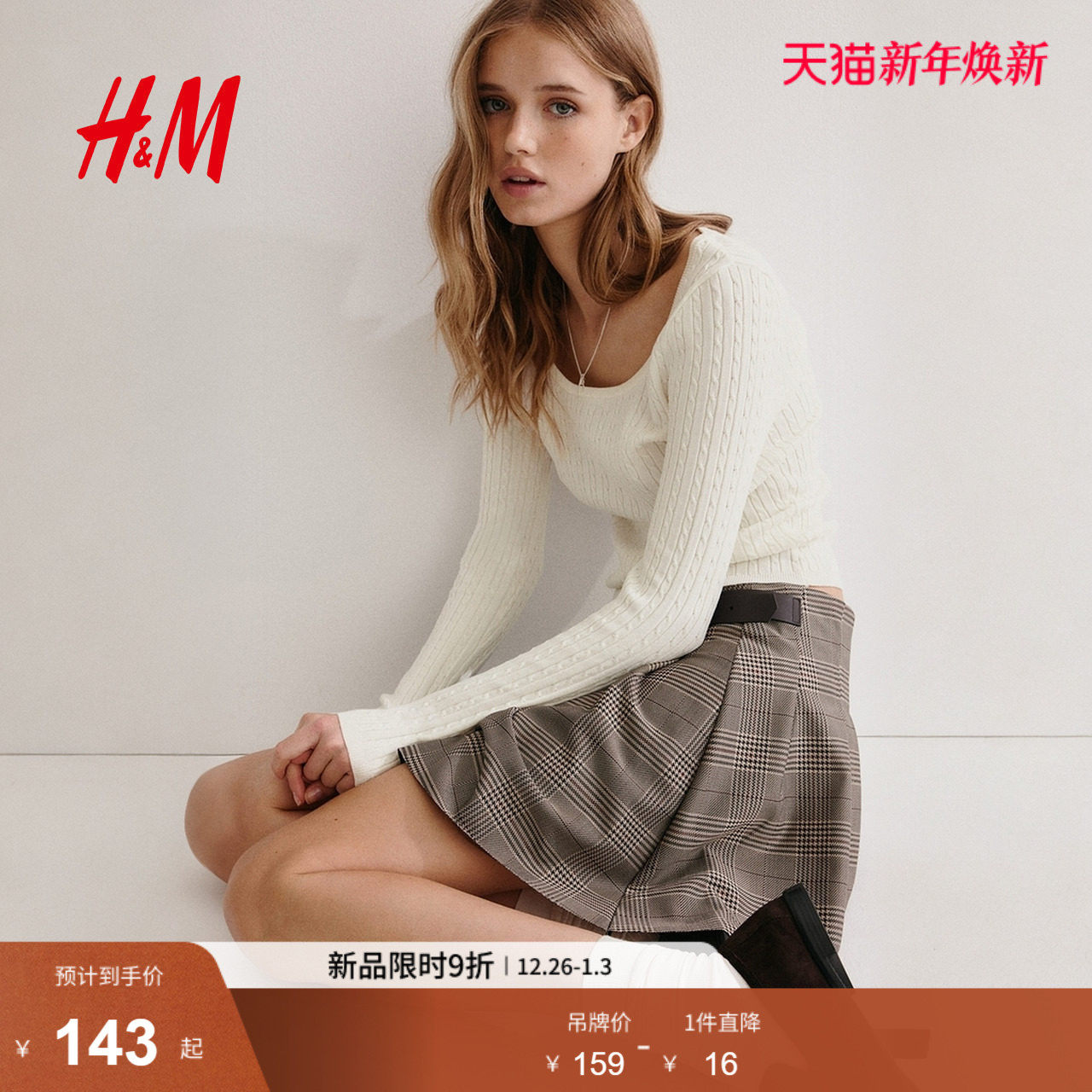 HM女装毛针织衫2025年冬季新款气质深酒红色绞花针织套衫1289676