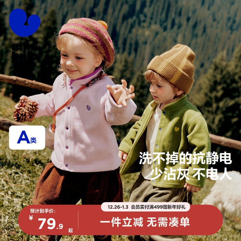 迷你巴拉巴拉男女童毛绒外套宝宝抗静电摇粒绒保暖上衣2025秋新品