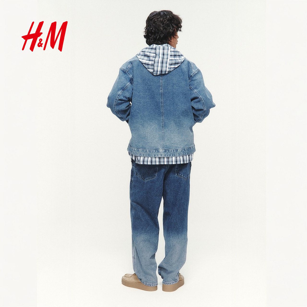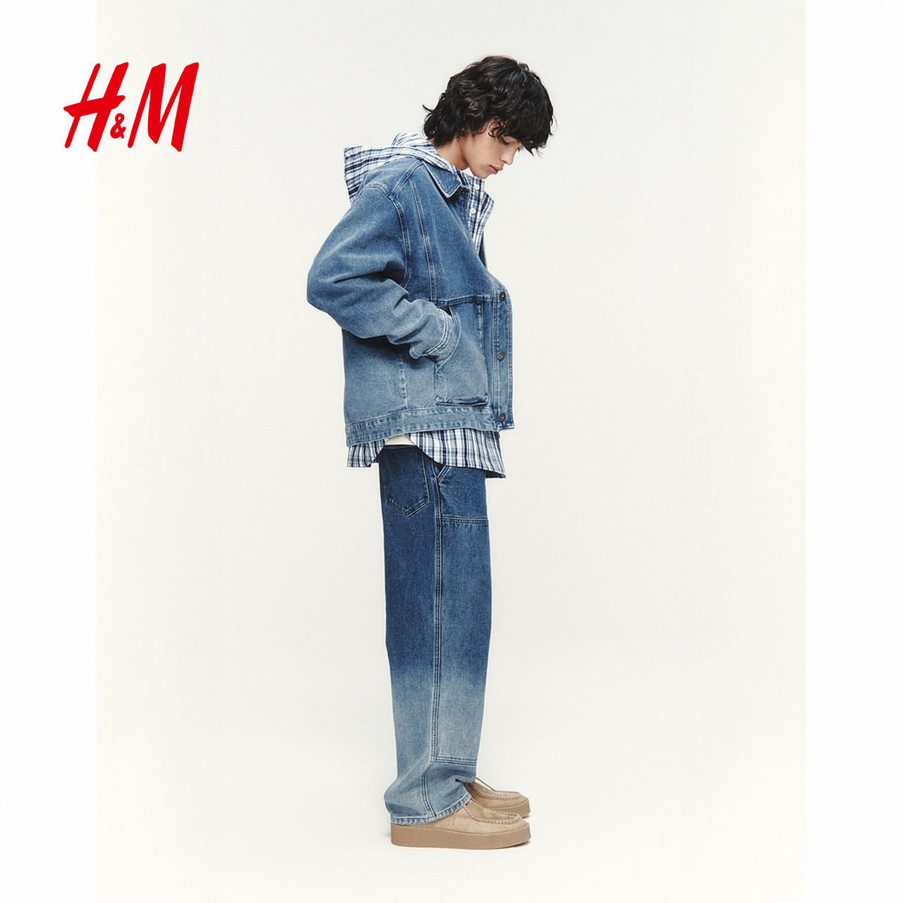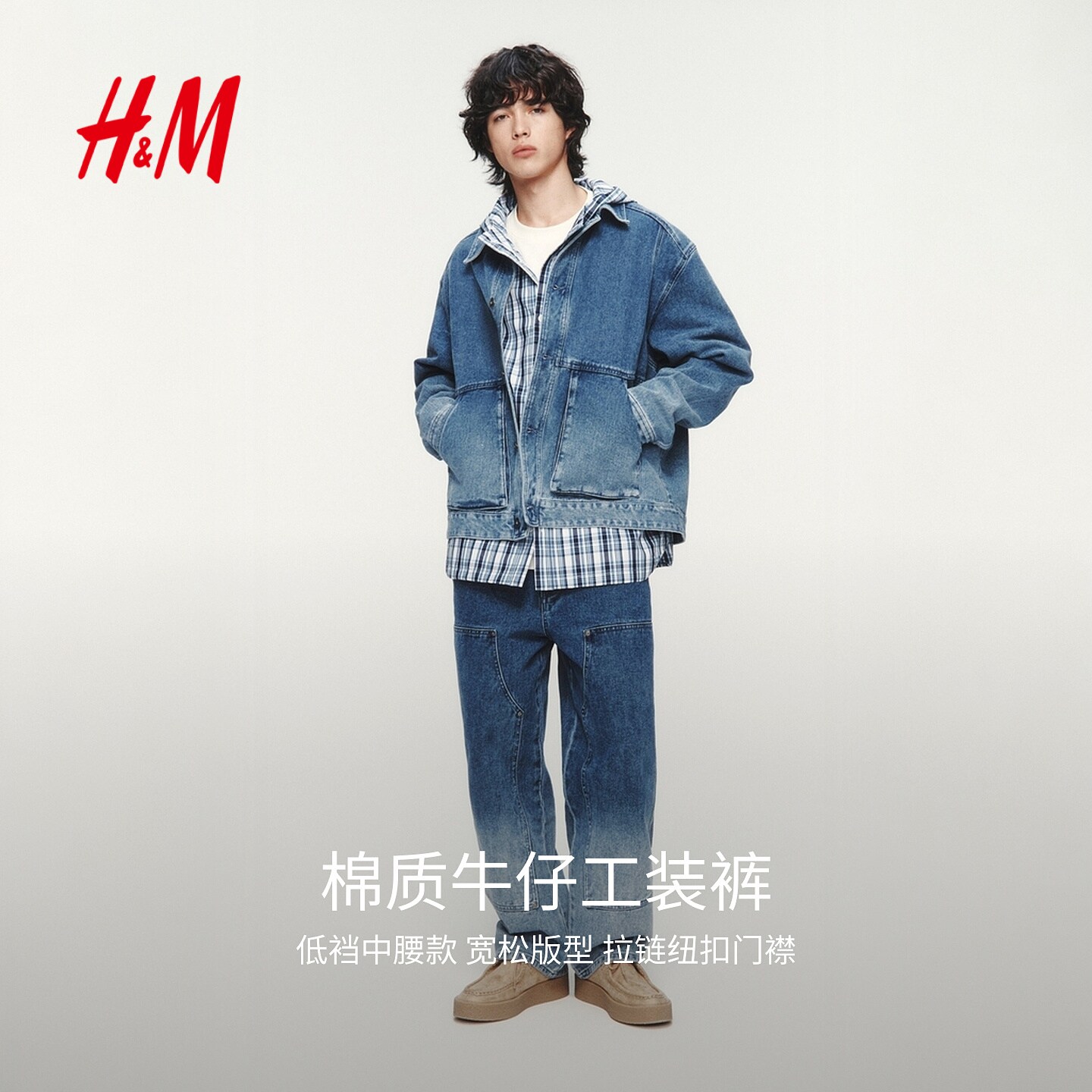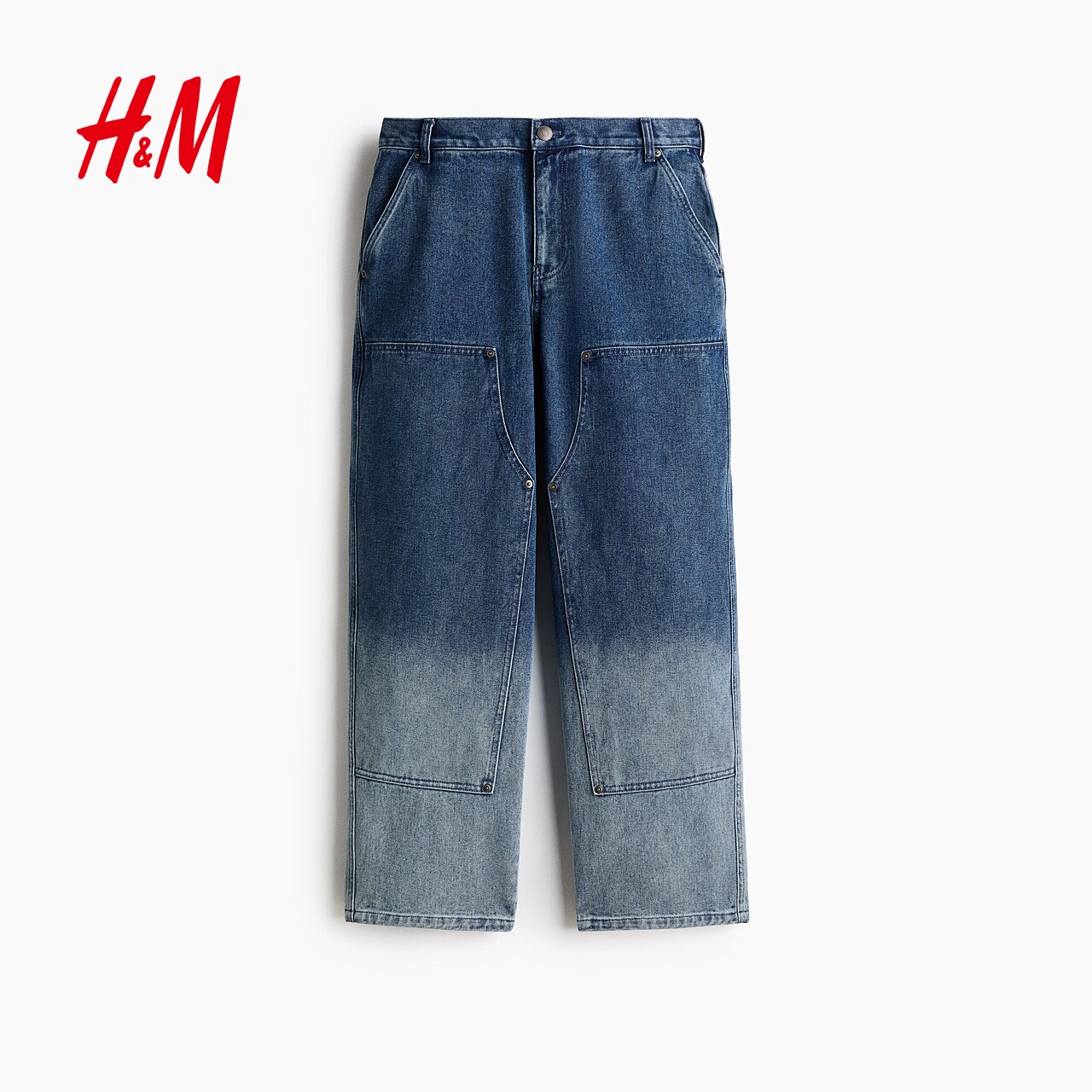 HM男装牛仔裤春季新款复古直筒时尚做旧水洗宽松工装裤1326427
