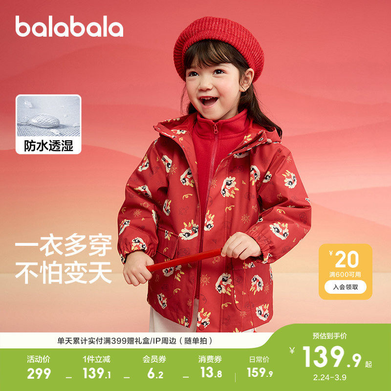 巴拉巴拉童装儿童外套男童衣服春秋女童两件套早春秋红红色拜年服