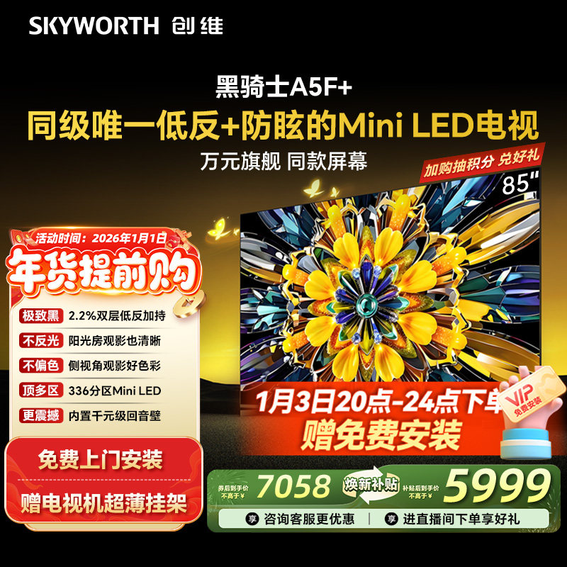 创维黑骑士85A5F+ 85英寸 Mini LED电视机 以旧换新补贴 官方旗舰