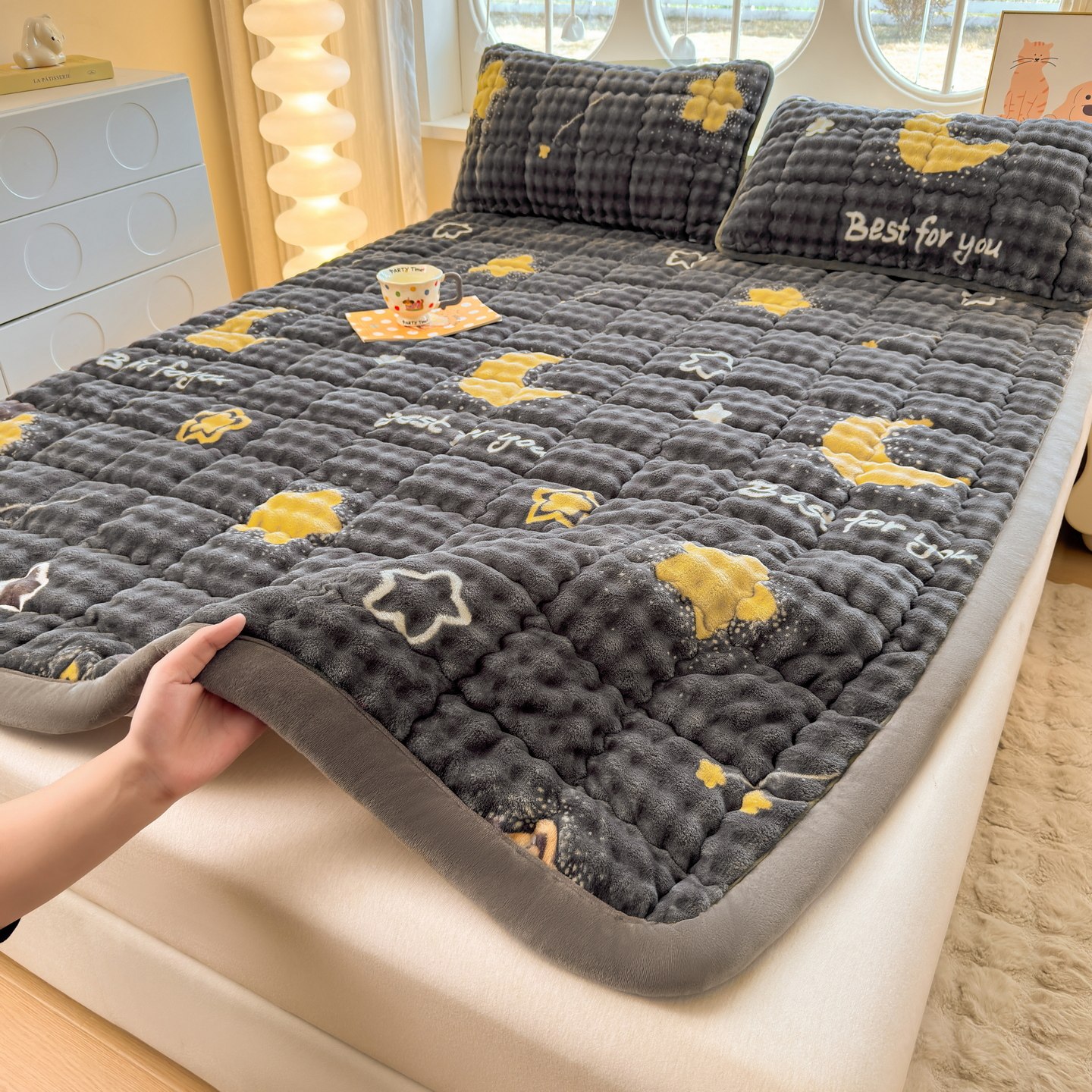 牛奶绒加绒厚毛毯冬季保暖家用床褥垫被珊瑚绒床单三件套床盖床垫