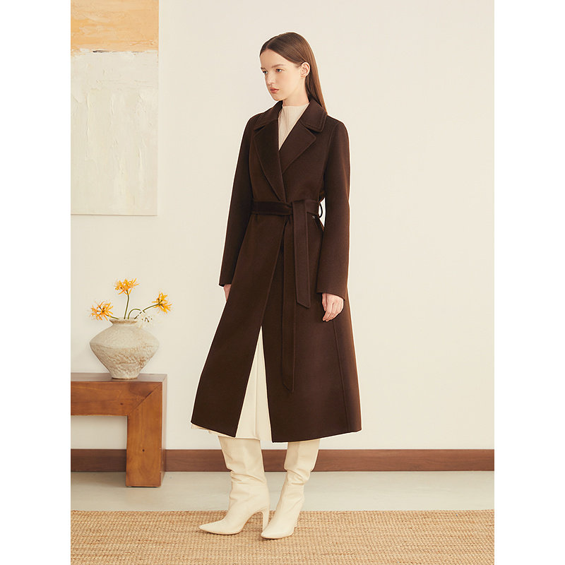 YINER音儿专选2025冬季新款长款翻领暗扣羊毛羊绒混纺双面呢大衣