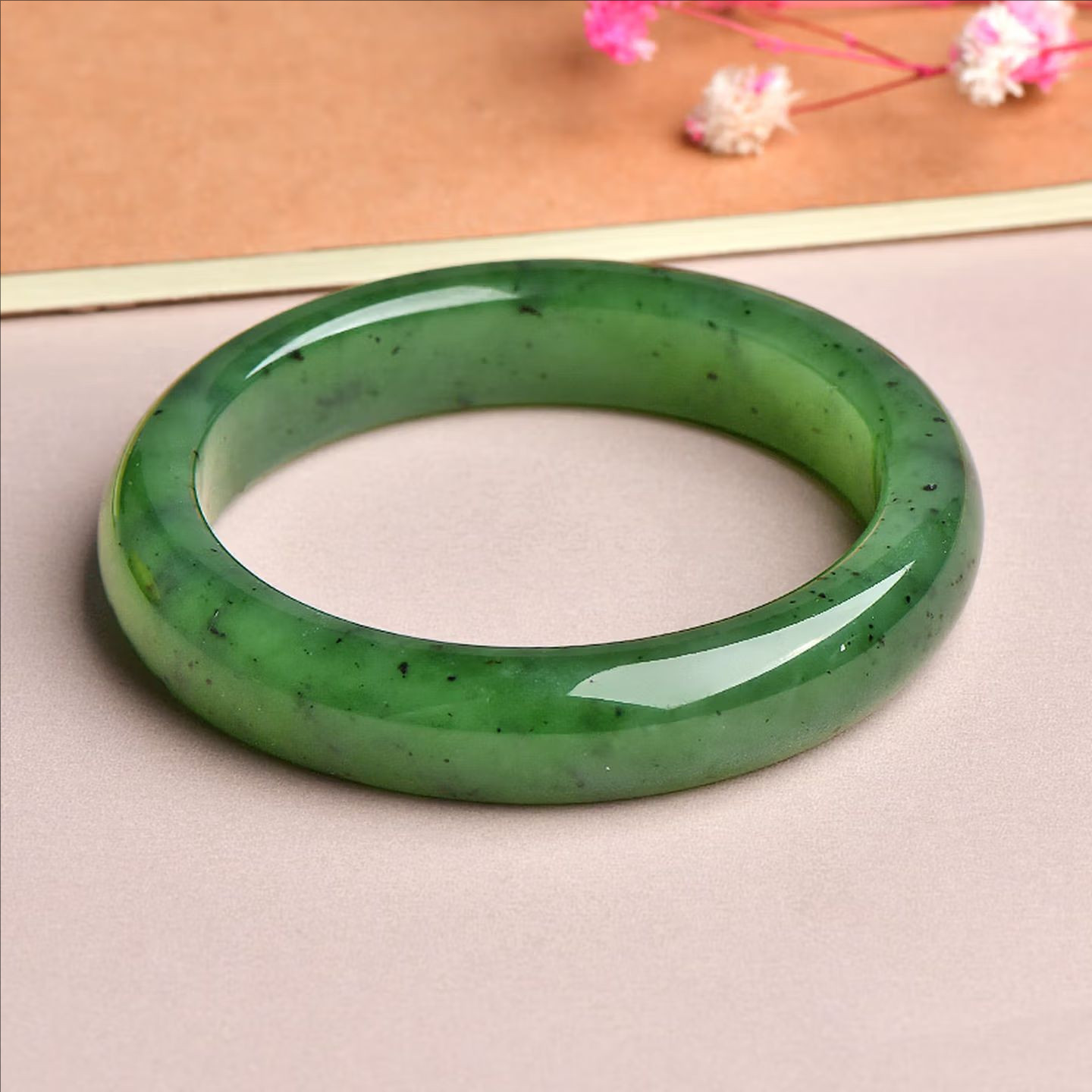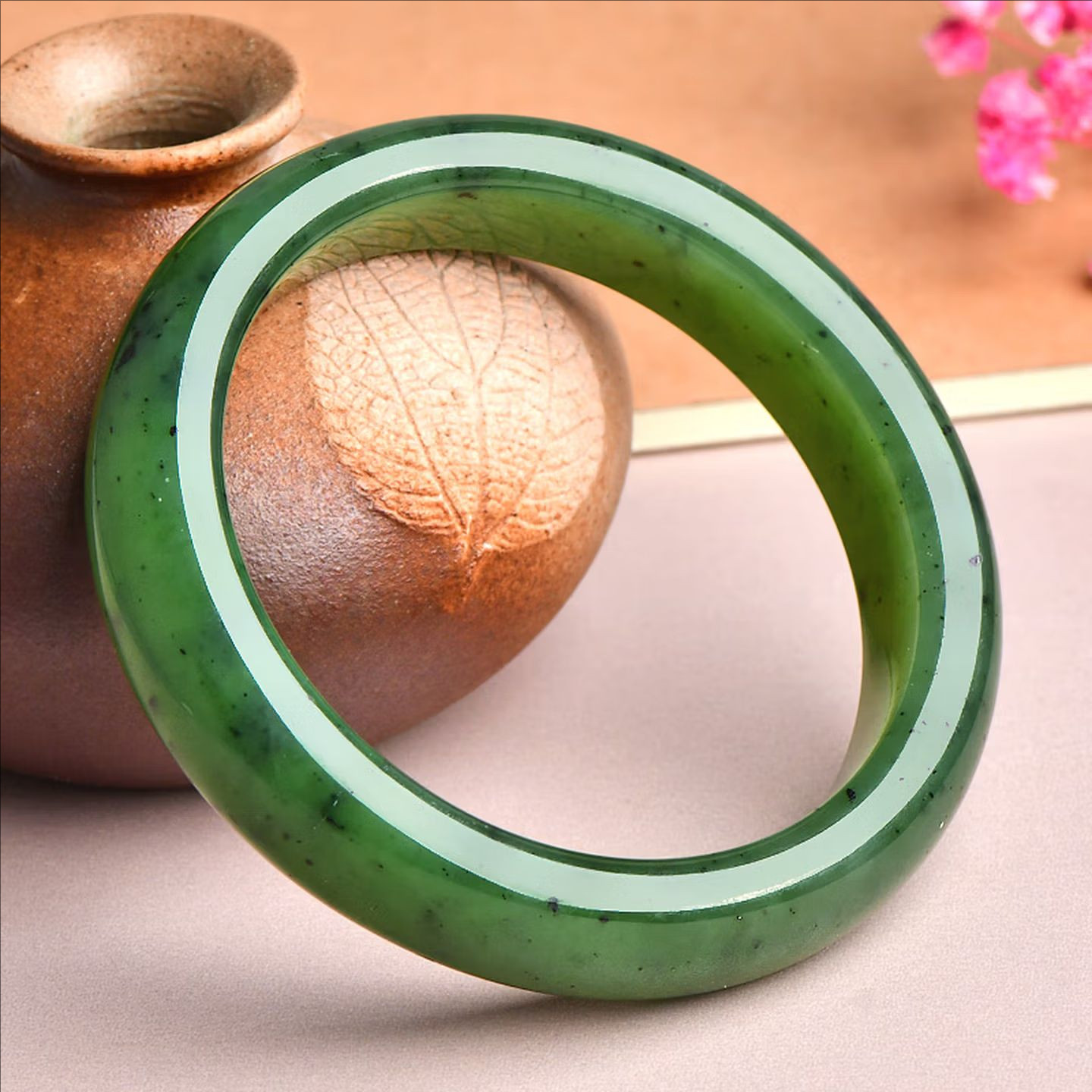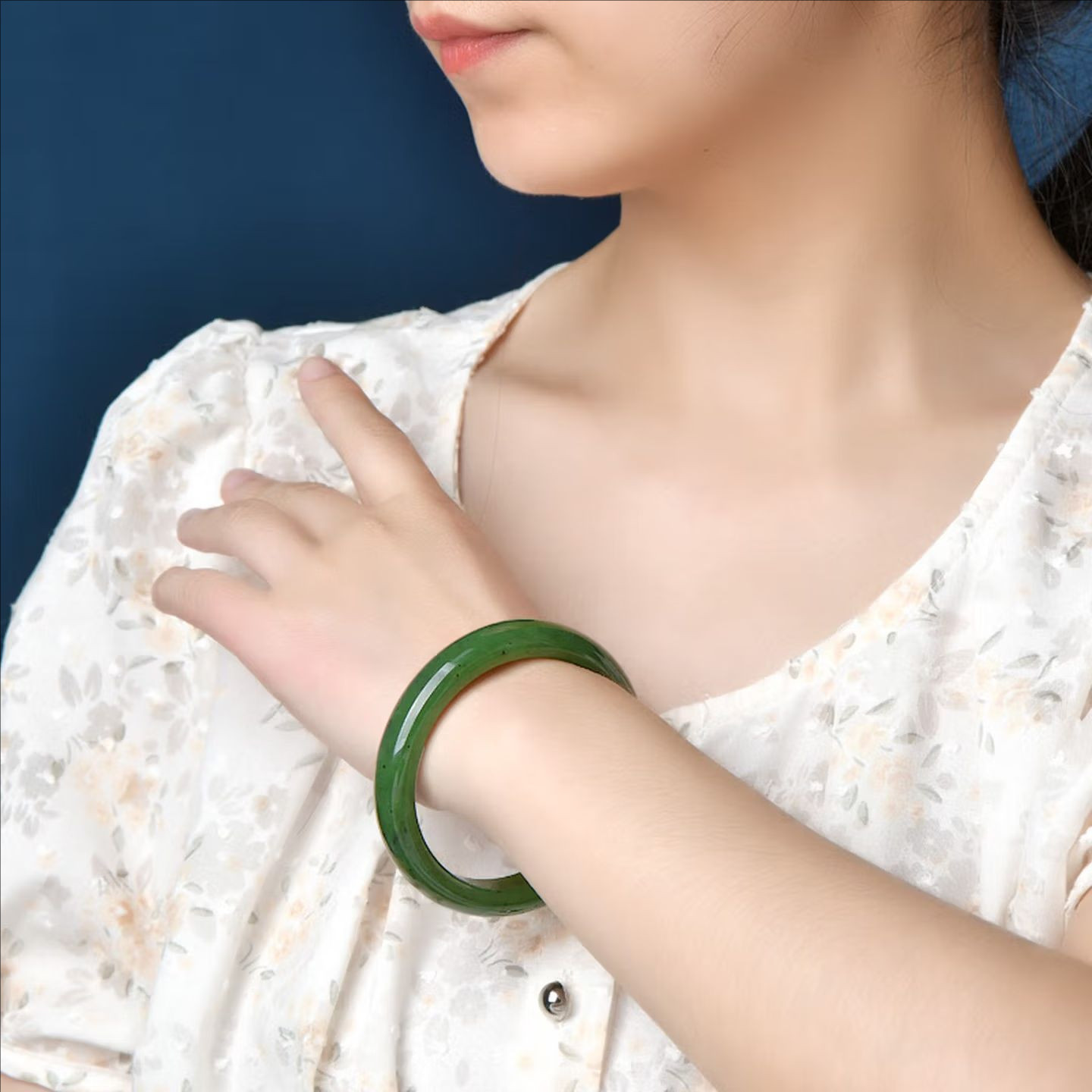正品新疆和田玉俄碧老坑料碧玉镯子送妈妈女友真玉石手镯带证书