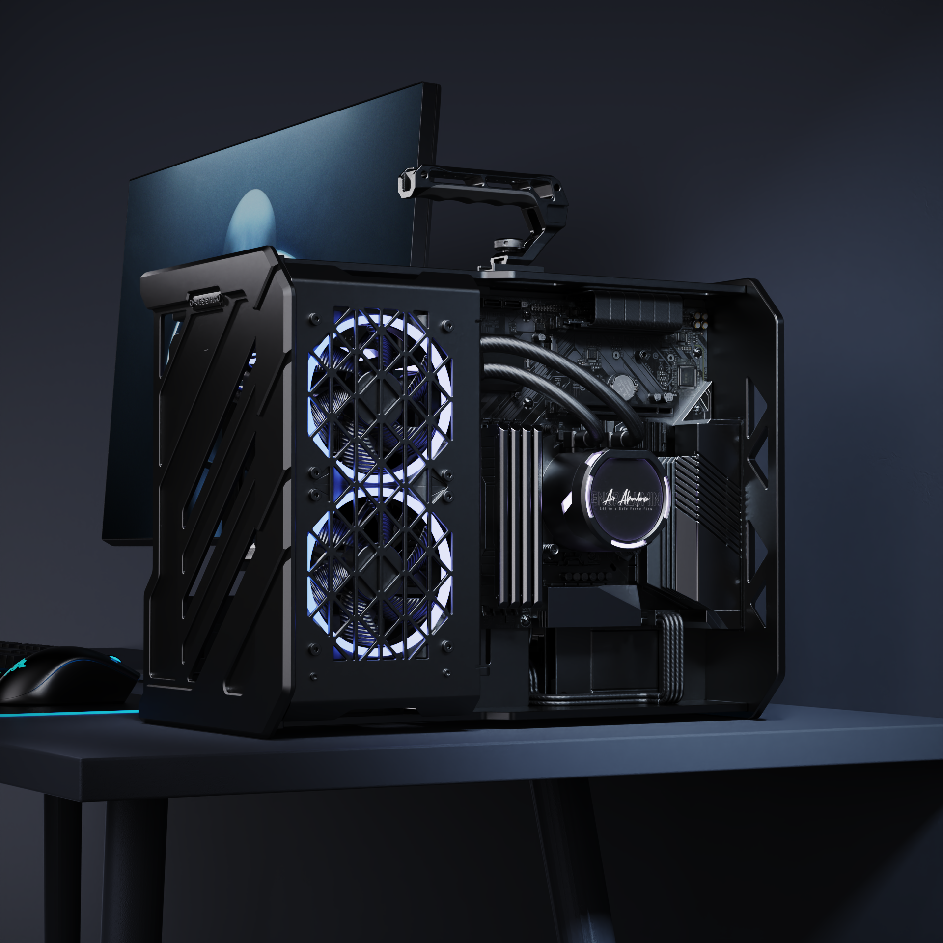 开放式全铝cnc机箱模块化水冷MATX游戏机箱VEDDHA DEFENDER 01