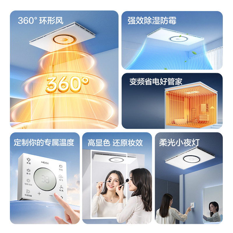 【重磅新品】恒洁卫浴恒温风暖浴霸灯浴室取暖集成吊顶排气扇照明