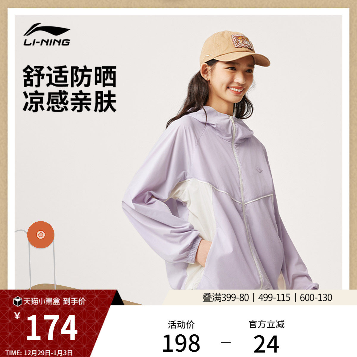 李宁防晒衣女春夏新款轻薄透气抗紫外线皮肤衣运动服外套