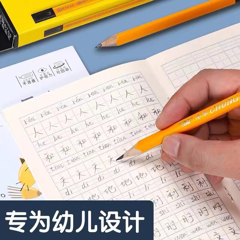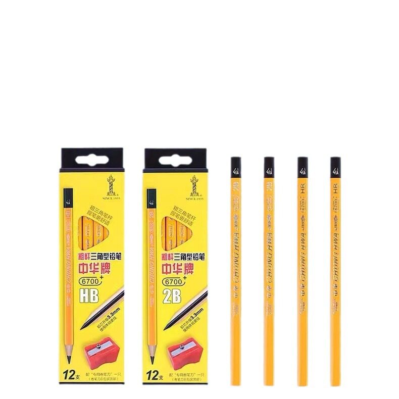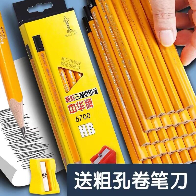中华牌三角杆粗杆粗铅木杆6700大三角HB学生铅笔书写2B绘画素描笔