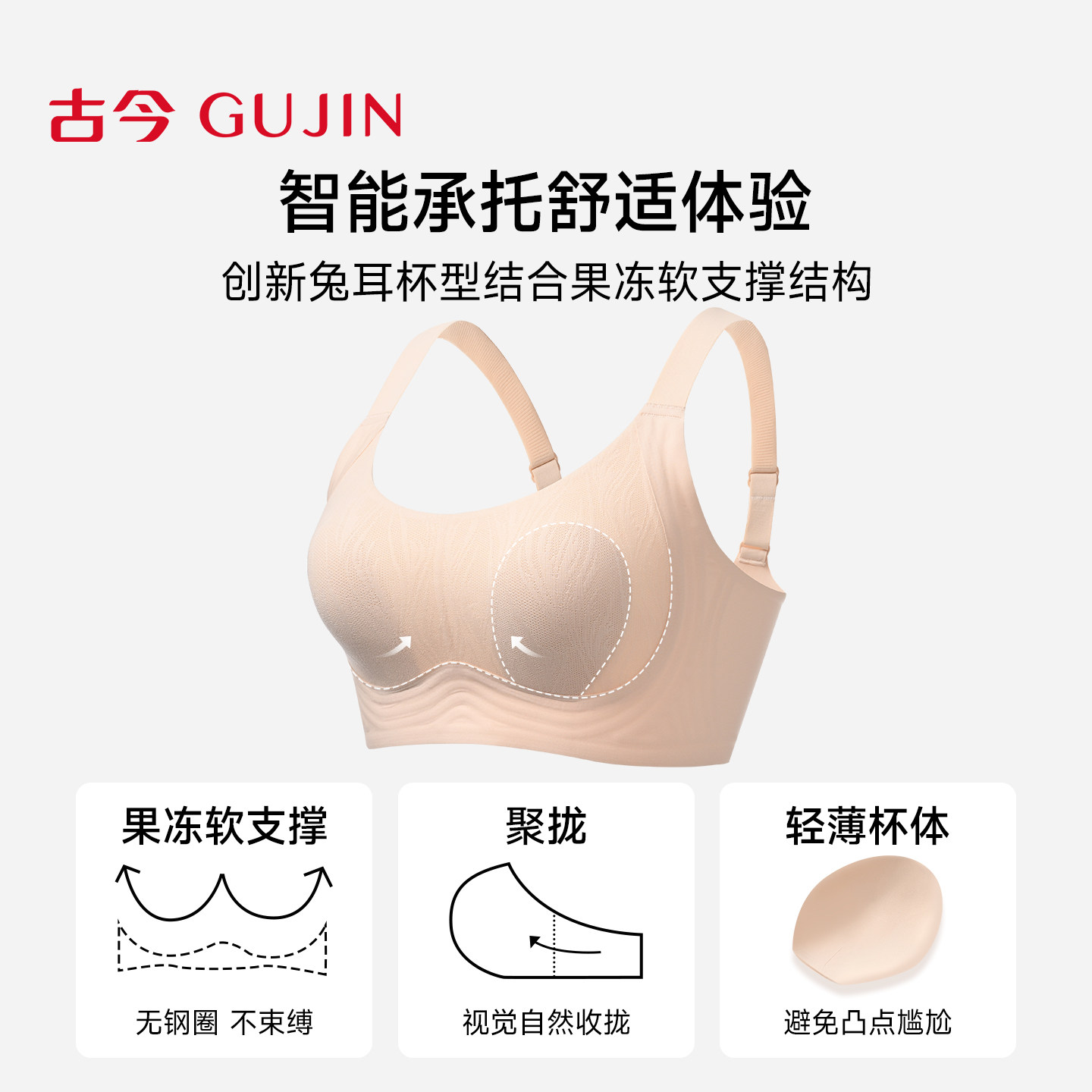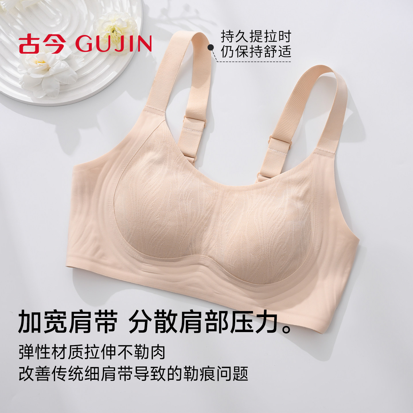 古今大胸显小内衣女蕾丝兔耳杯无钢圈抹胸式薄模杯透气文胸罩