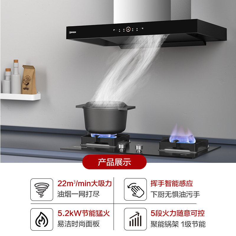 欧派厨电抽油烟机燃气灶套餐大吸力烟机灶具挥手感应烟灶套装总部