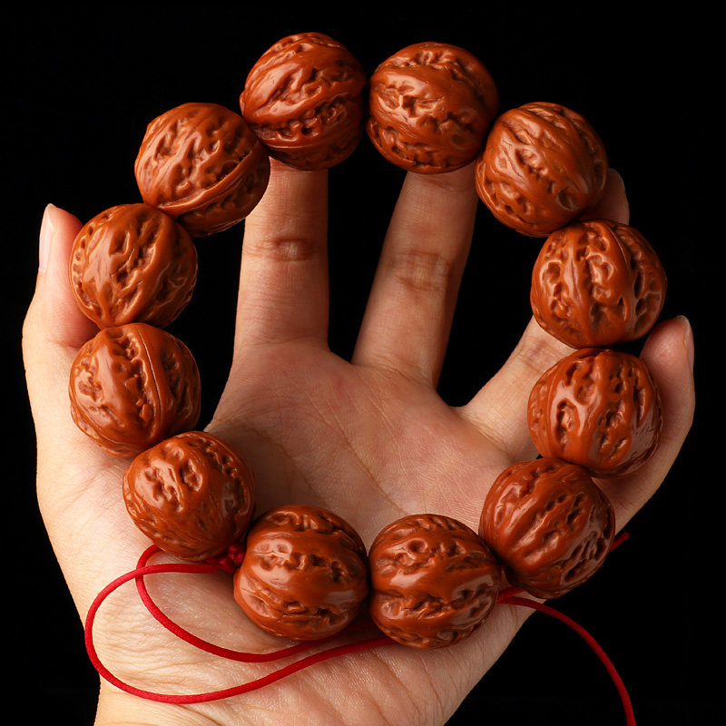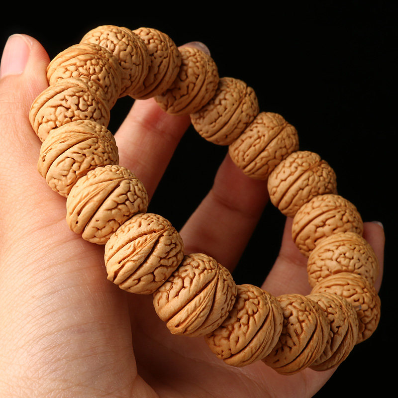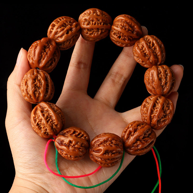 文玩京八棱核桃磨盘扇面脑纹小秋子桃核手串包浆手持手把件古玩男