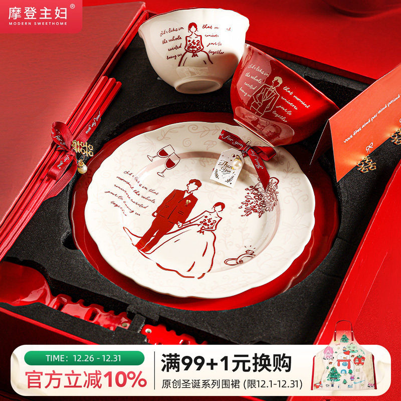 摩登主妇新婚订婚结婚礼物送新娘新人实用餐具套装乔迁碗盘碟礼盒