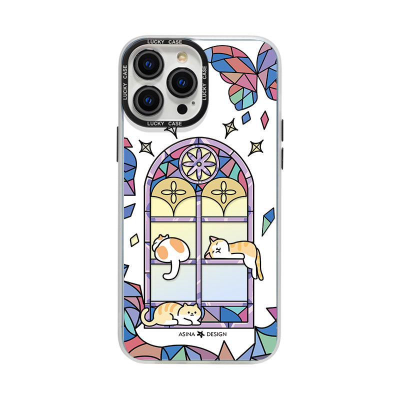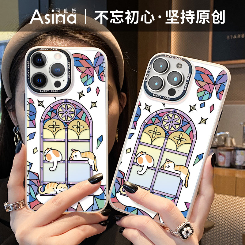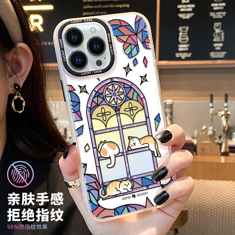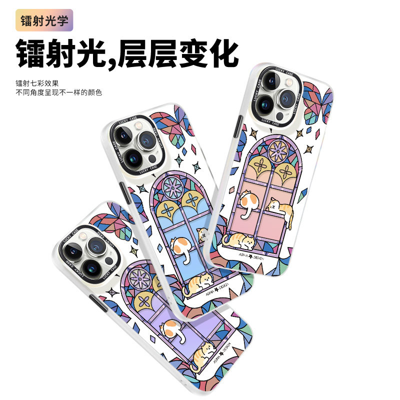 窗花猫咪适用iPhone15Promax手机壳14不撞壳苹果15保护套镭射13网红超火15plus全包12防摔女ip14Pro新款可爱