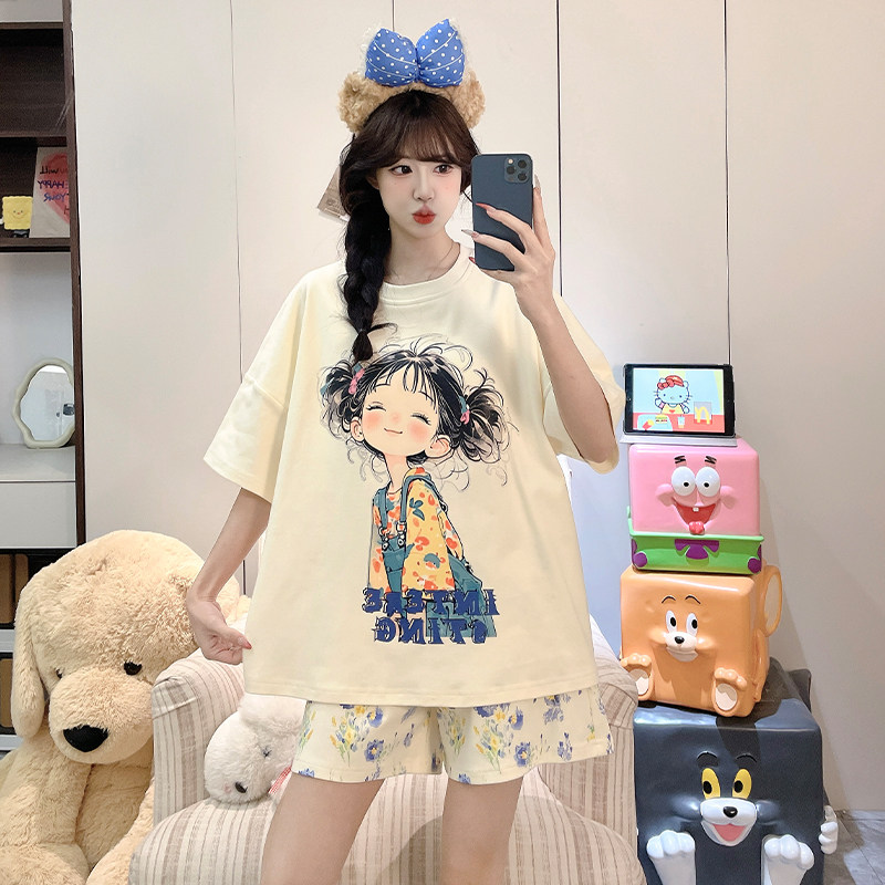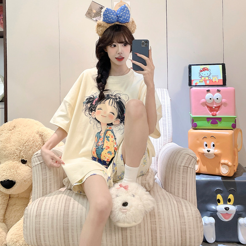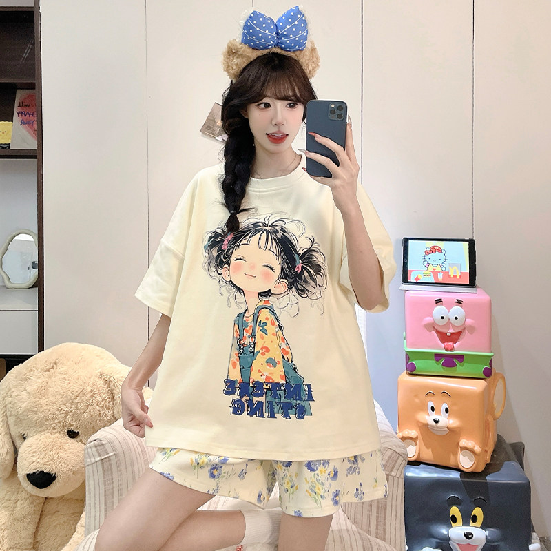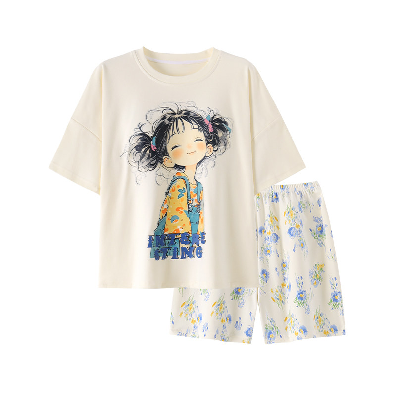 夏季睡衣女款短袖棉绸家居服2026新款卡通甜美少女夏天薄款可外穿