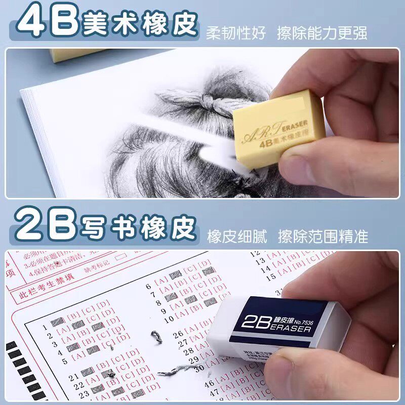2B考试专用橡皮擦小学生无屑省力儿童用2B笔擦得干净4B橡皮批发像皮美术文具2B笔擦得不留痕素描