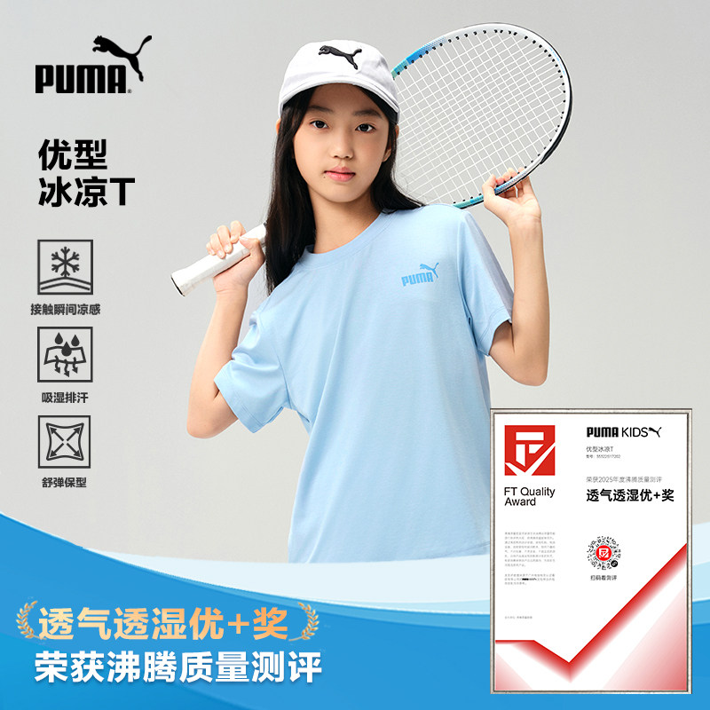 PUMA彪马童装新款儿童夏季T恤吸湿排汗快干短袖凉感Q弹宽松男女童