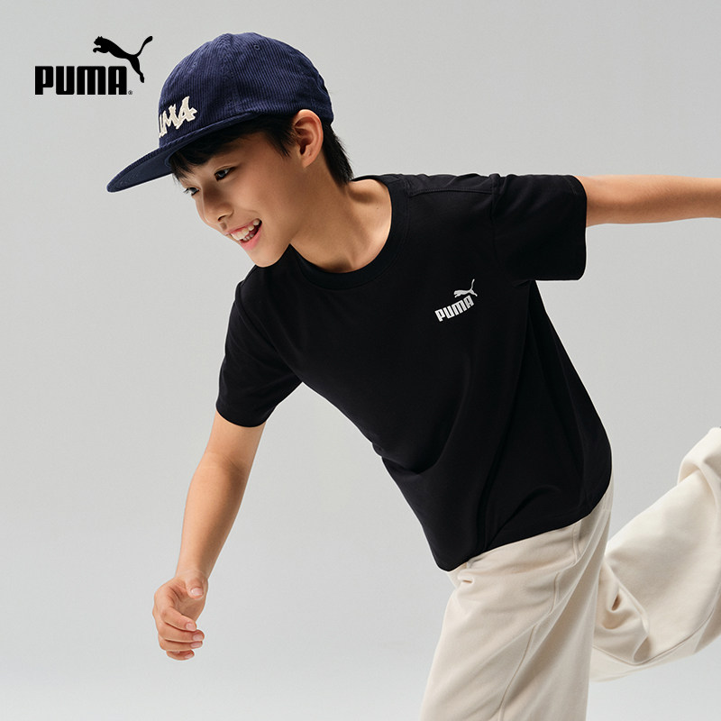 PUMA彪马童装儿童男童吸湿T恤大童衣服速干短袖运动宽松圆领百补
