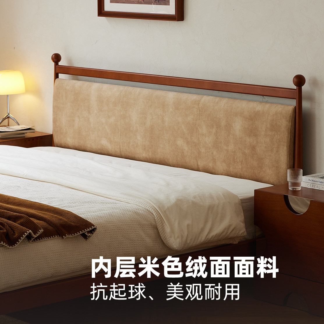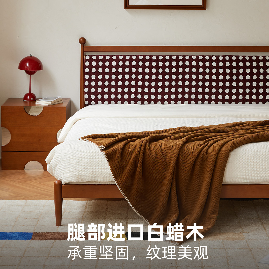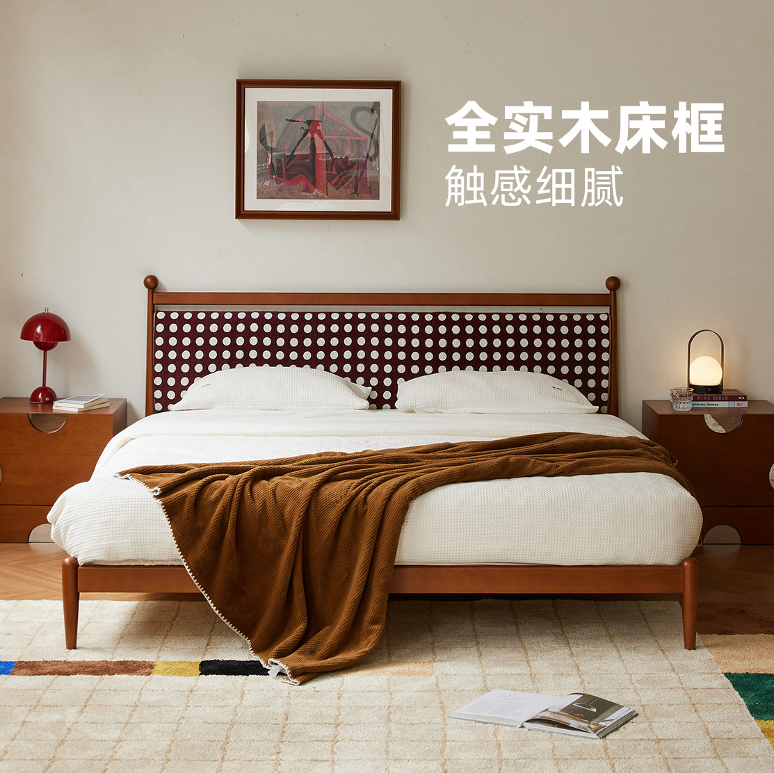 松木红色波点中古高端主卧床1米8双人法式复古2026新款布艺靠包床