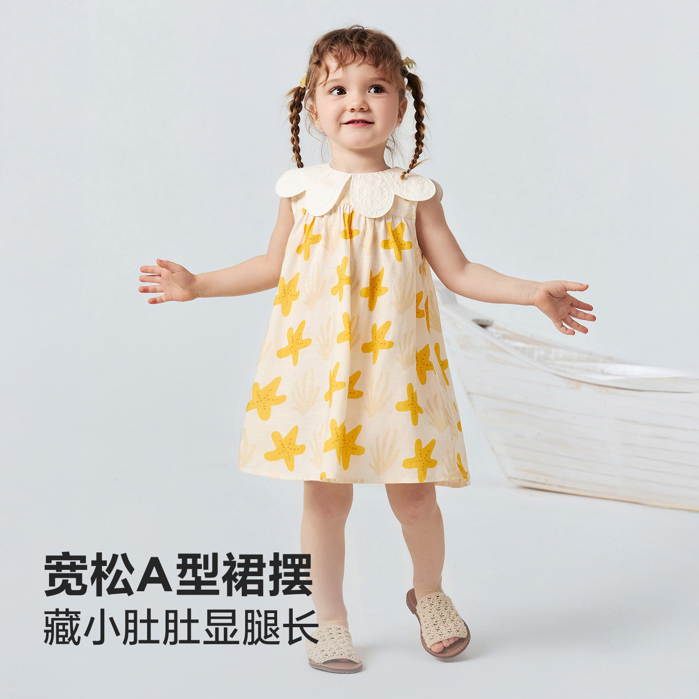 迷你巴拉巴拉女童宝宝裙子夏季凉感棉麻甜美可爱连衣裙2026夏