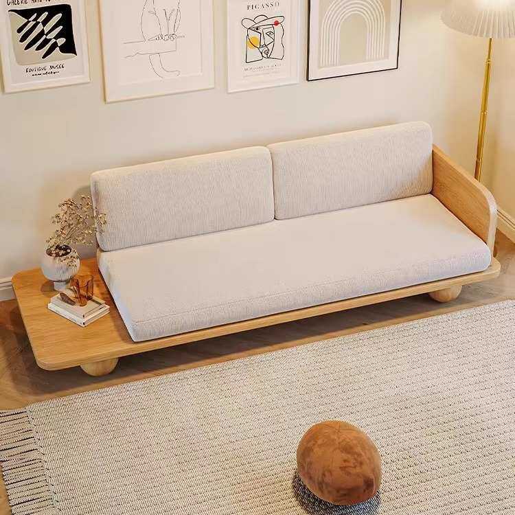 日式小户型简约现代实木沙发客厅布艺可拆洗民宿三人位科技布沙发